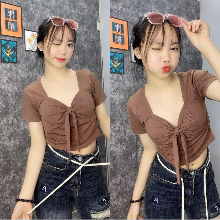 Áo Thun Nữ Cọc Tay Chất Tăm Hàng Quảng Châu Có Đệm Mút Thắt Nơ Xinh Xắn Chất Bo Rip Dày Đẹp