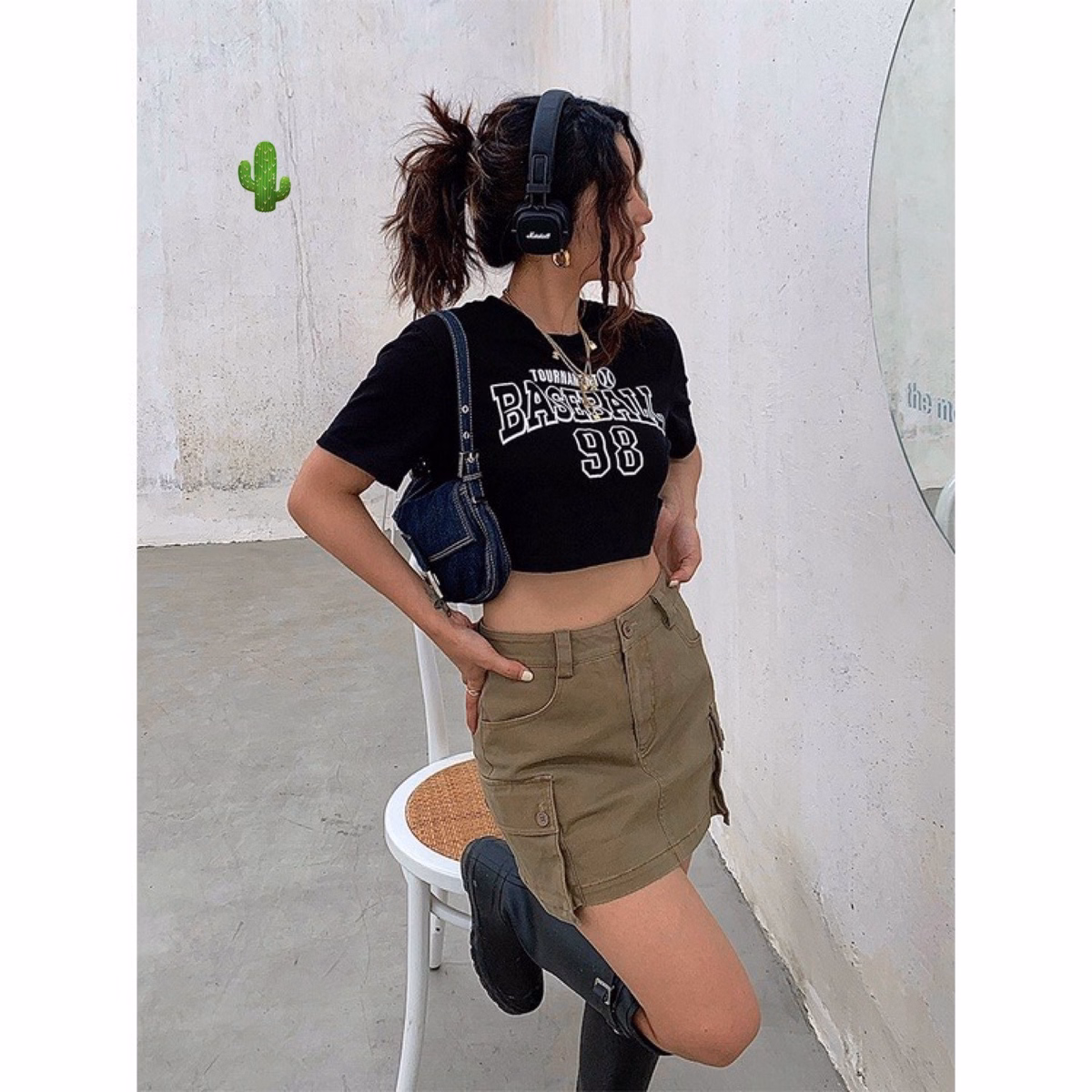 Áo Thun Nữ Croptop Cổ Tròn Tay Ngắn Baseball 98 – Ausa House