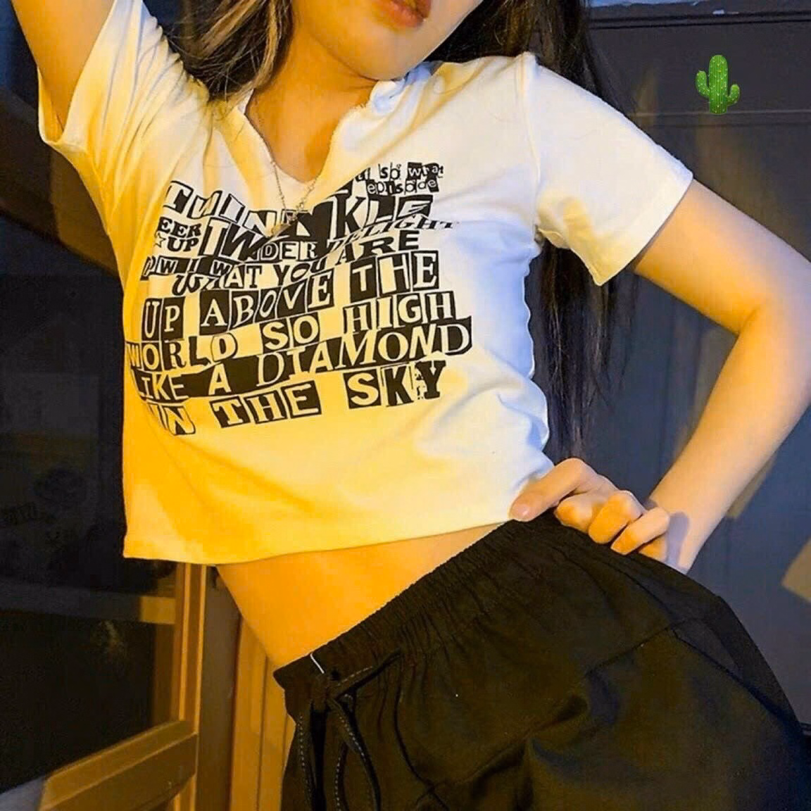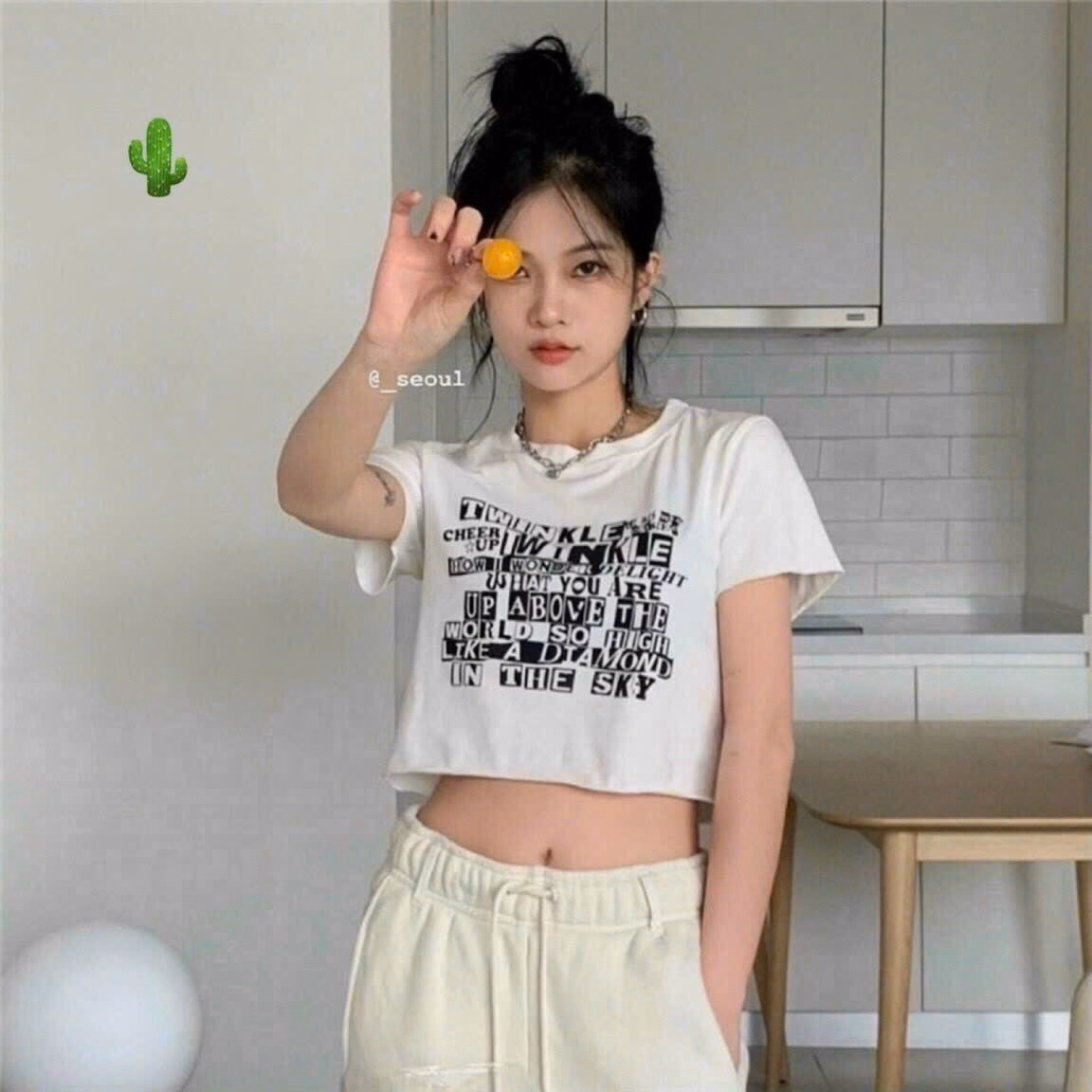 🌸 Áo croptop ôm body nữ cổ tròn in chữ cực cool cực chất