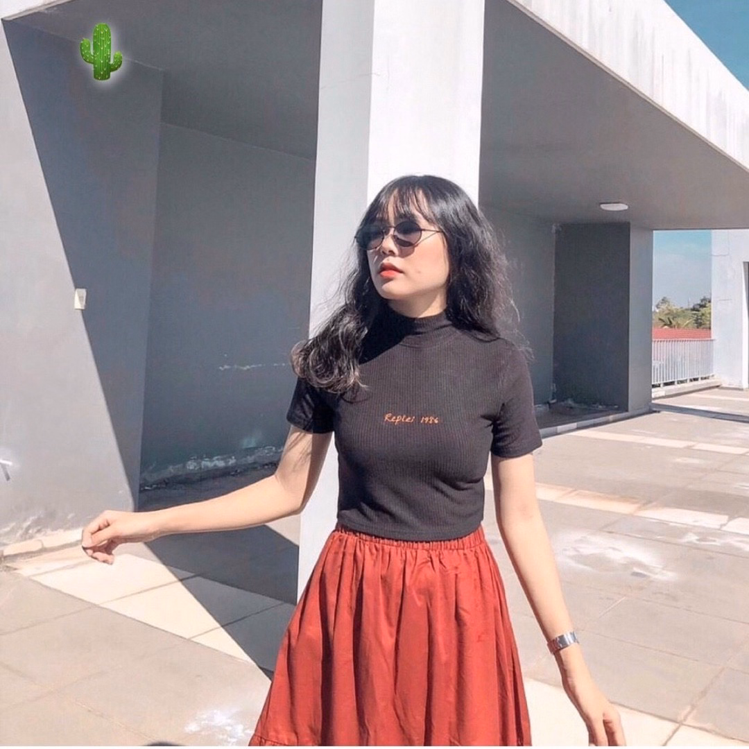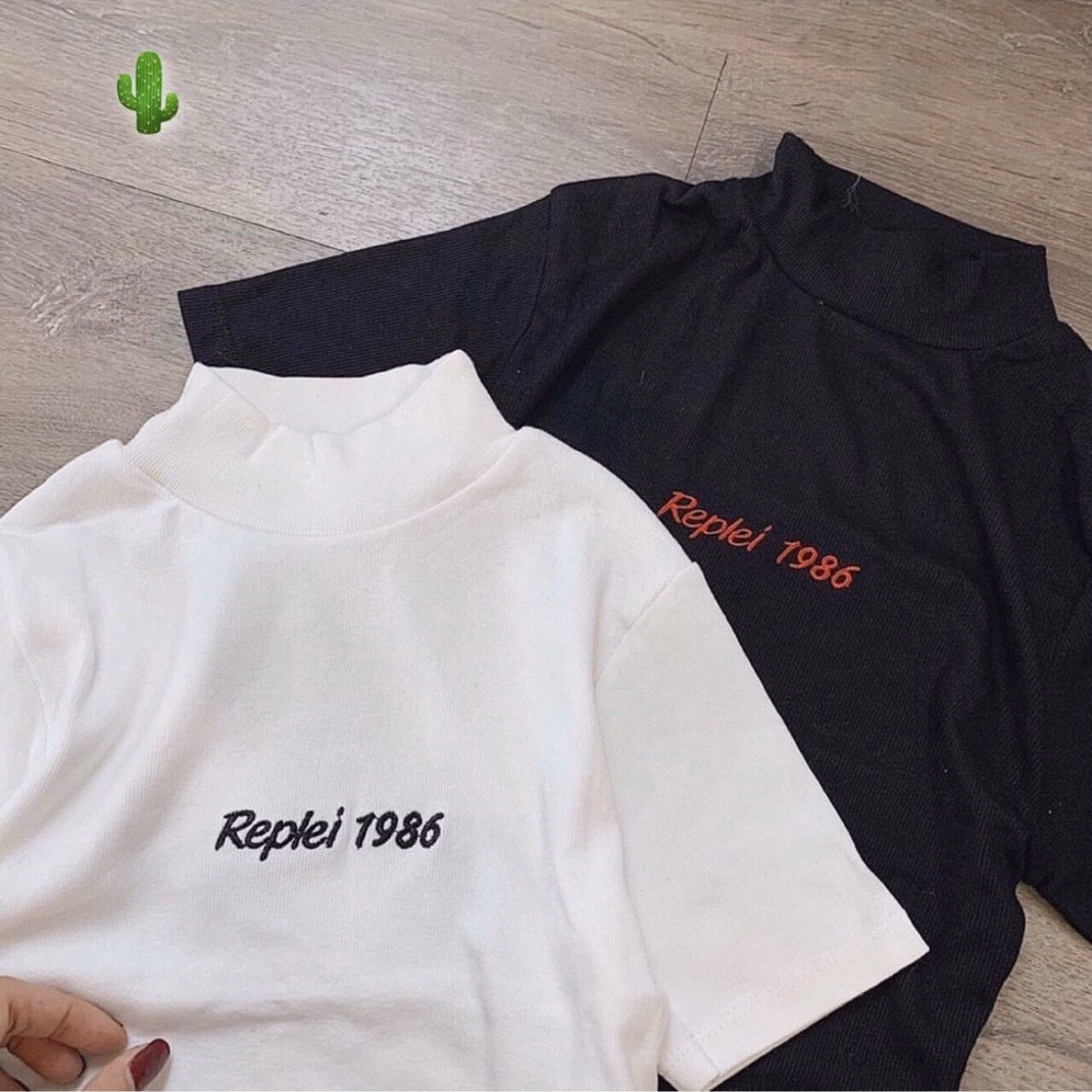 Áo Thun Nữ Croptop Cổ Tròn Tay Ngắn Cổ Trụ Replei 1986 – Ausa House