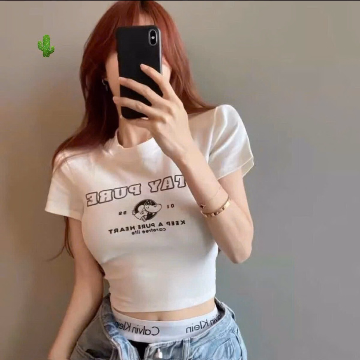 🌸 Áo croptop ngắn tay, ôm body sexy