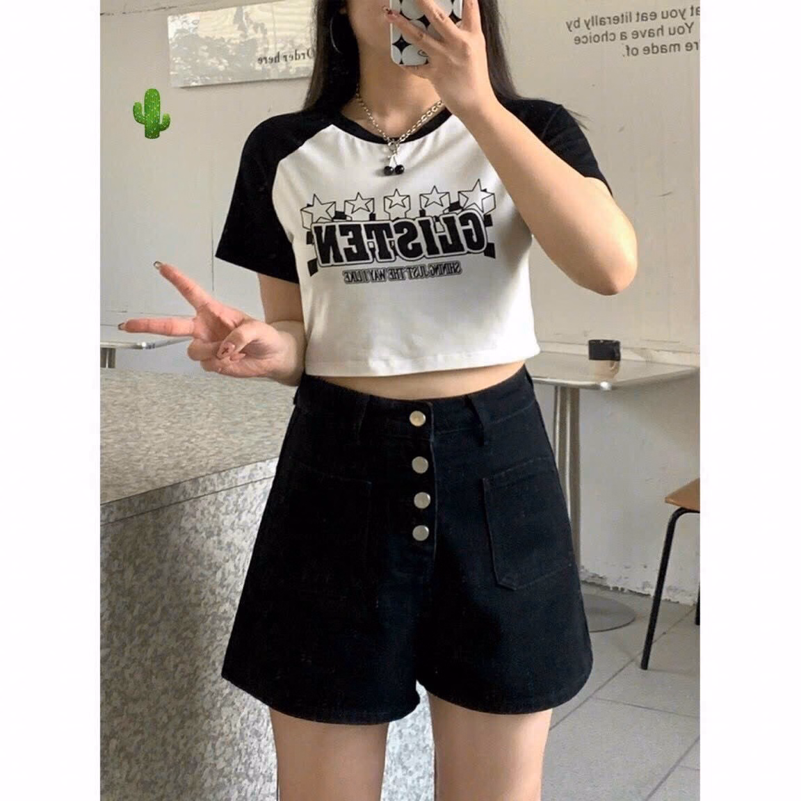Áo Thun Nữ Croptop Cổ Tròn Tay Ngắn Glisten 5 Sao – Ausa House