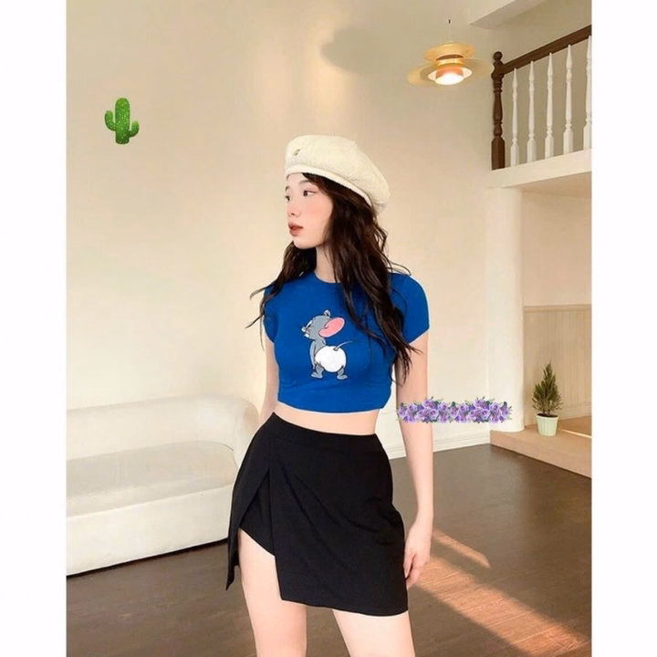 Áo Thun Nữ Croptop Cổ Tròn Tay Ngắn Jerry – Ausa House