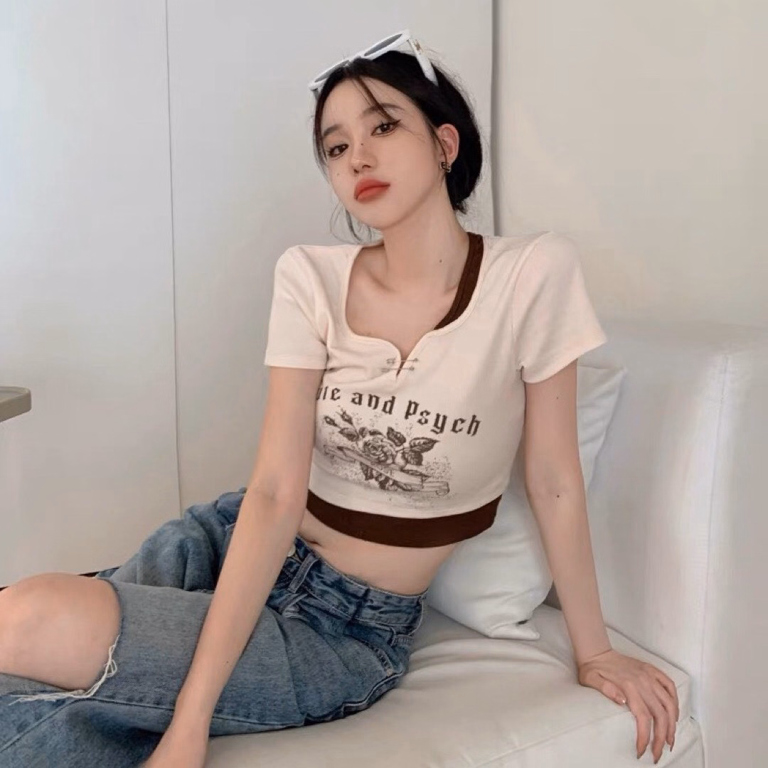 🌸 Áo croptop ngắn tay, ôm body sexy