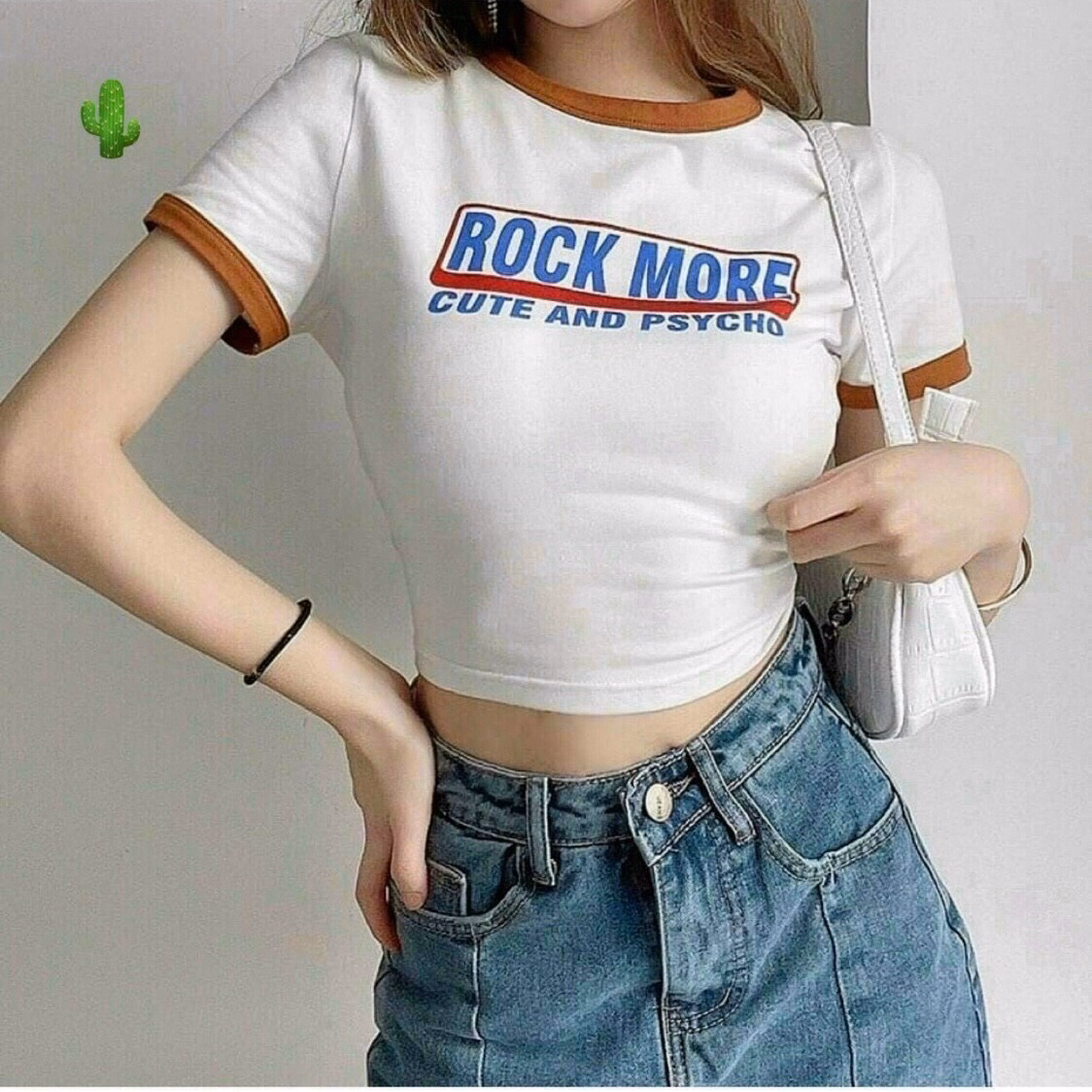 Áo Thun Nữ Croptop Cổ Tròn Tay Ngắn Rock More – Ausa House