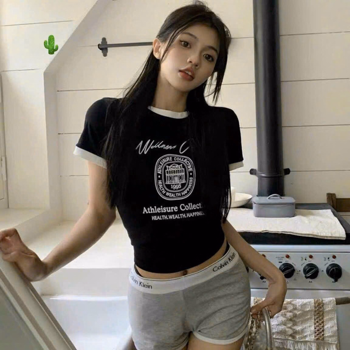 Áo Thun Nữ Croptop Cổ Tròn Tay Ngắn Wellness Clubs – Ausa House
