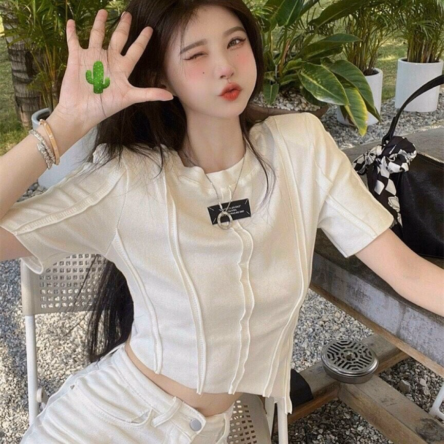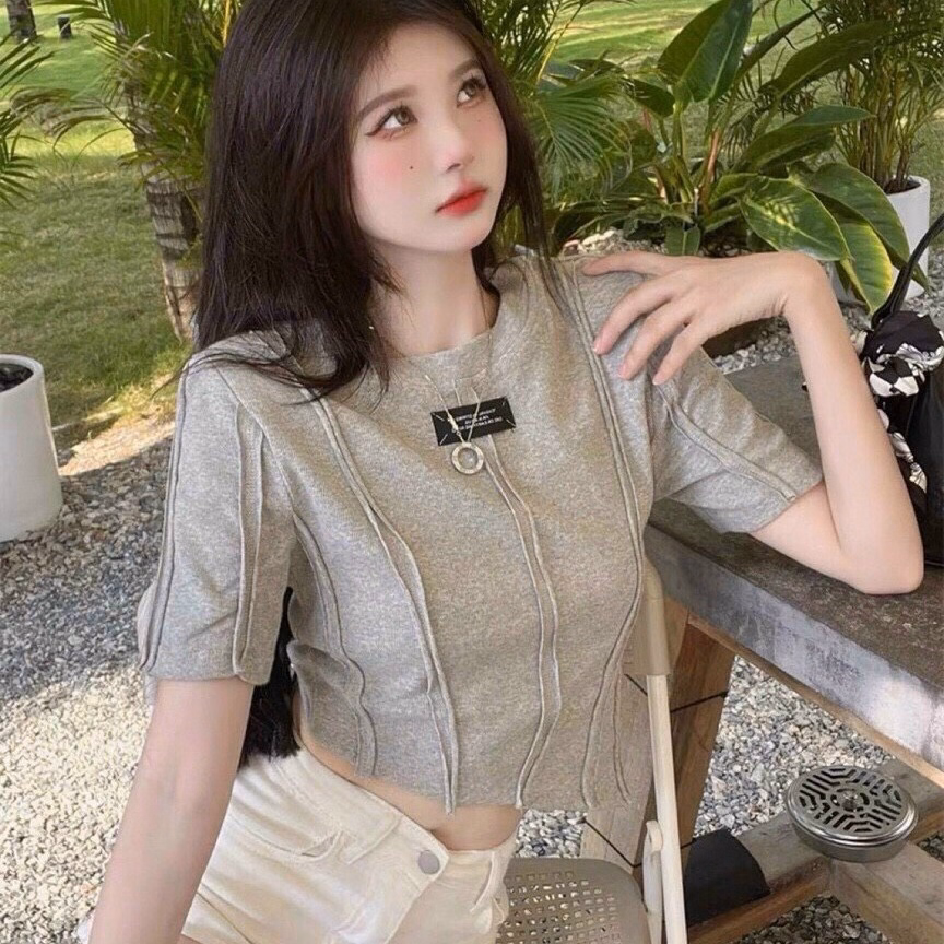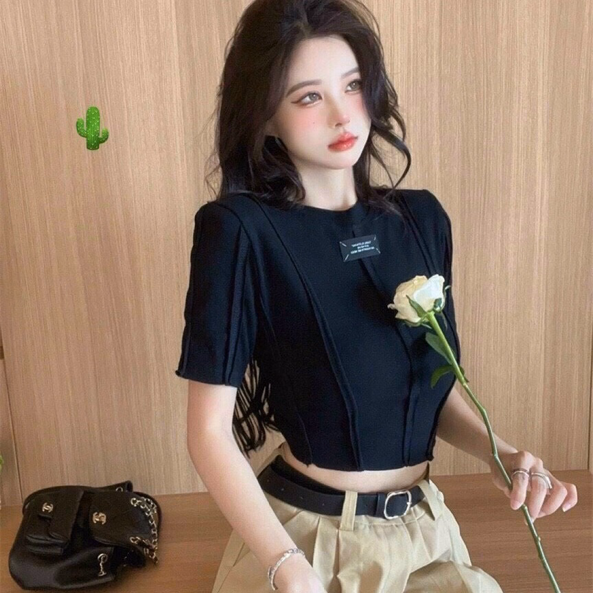 Áo Thun Nữ Croptop Logo Viền Nổi Thun Gân – Ausa House
