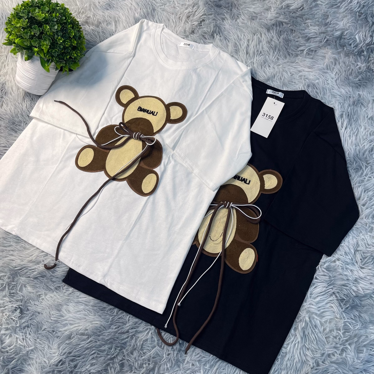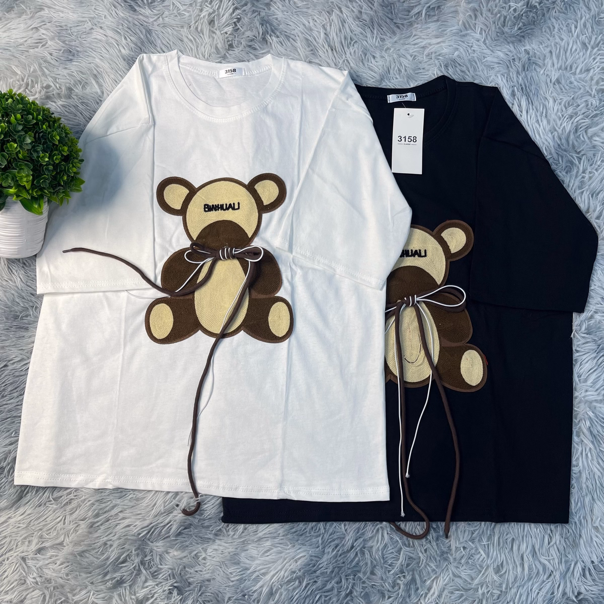 • – Tên Sản phẩm: Áo thun nữ, hình thêu gấu buộc dây cotton khô 3158