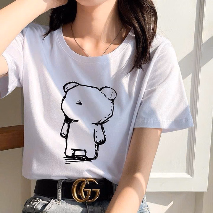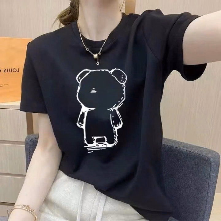 Áo Thun Nữ In Hình Gấu Dễ Thương Form Rộng Cotton Mềm Mại Phong Cách