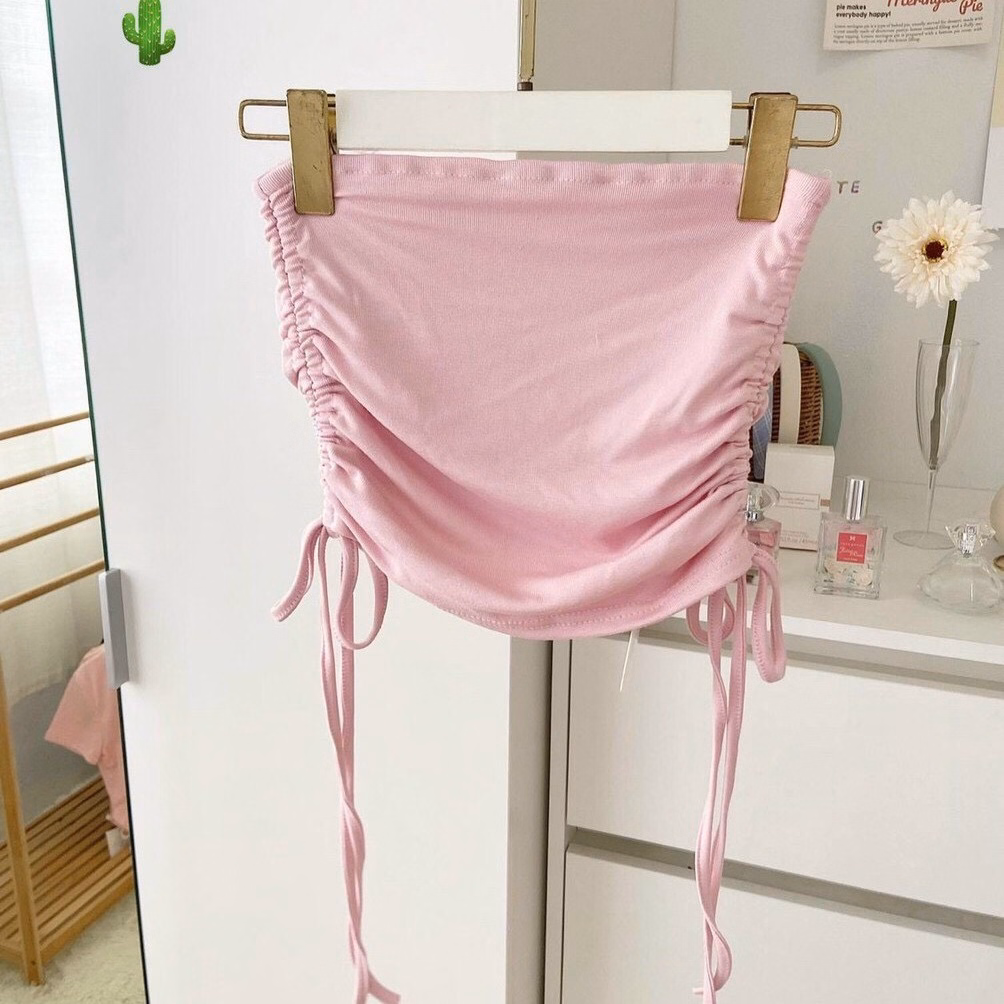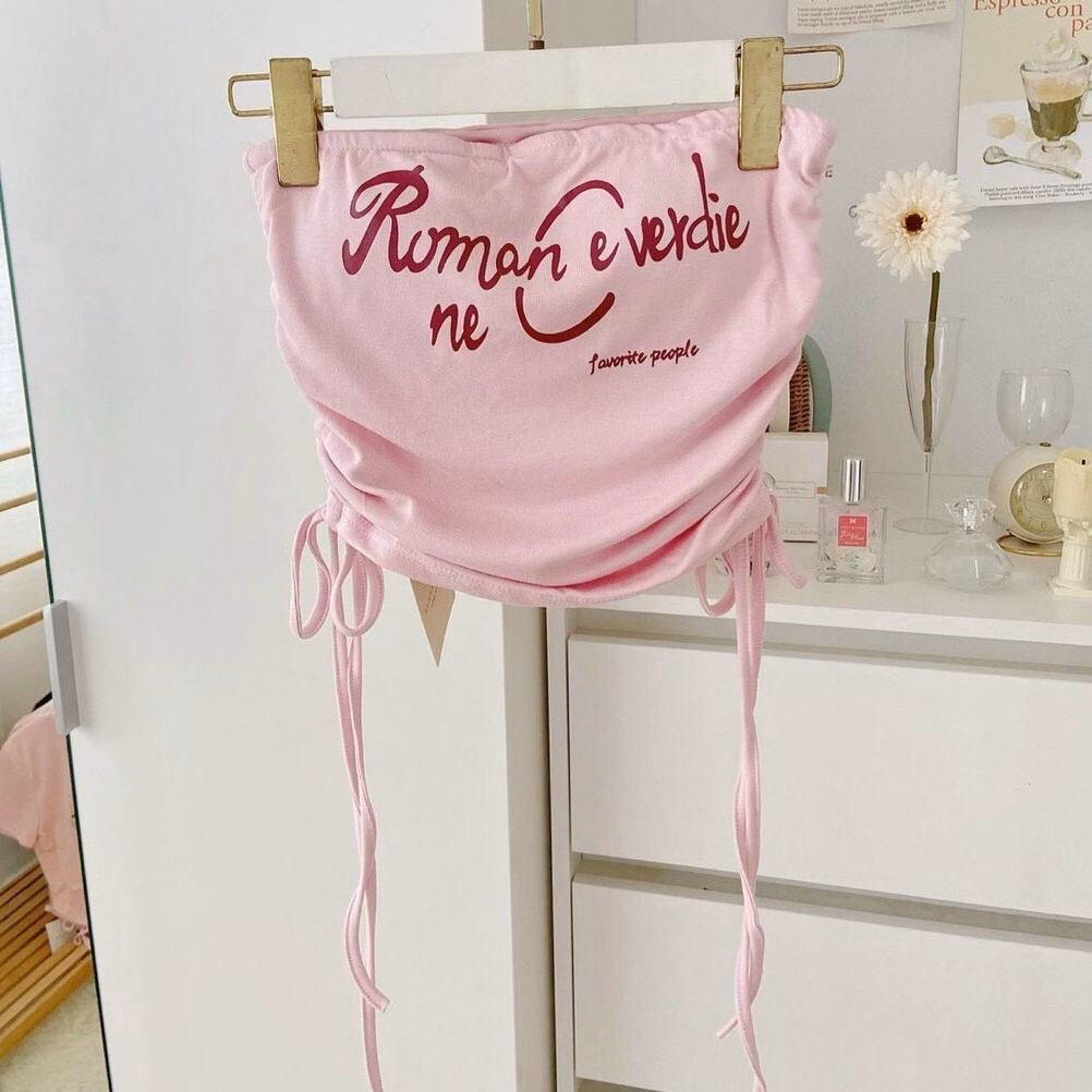 Áo Thun Nữ Ống Dây Rút Hồng Có Mút Romance Never Die – Ausa House