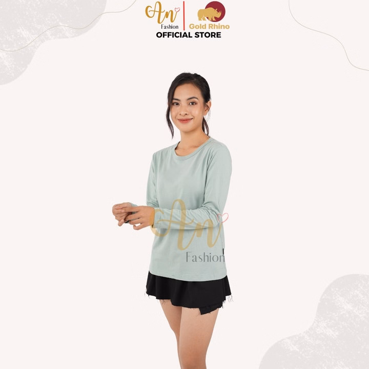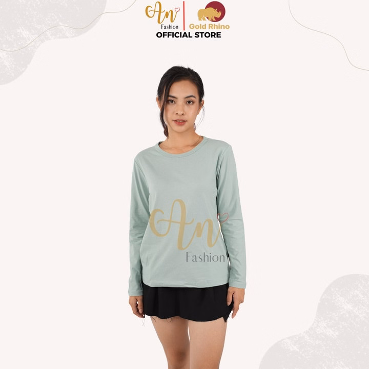 Áo Thun Nữ Tay Dài Cổ Tròn Màu Bạc Hà Đông Ấm Hè Mát Chất Liệu 100% Cotton Cao Cấp – Gold Rhino
