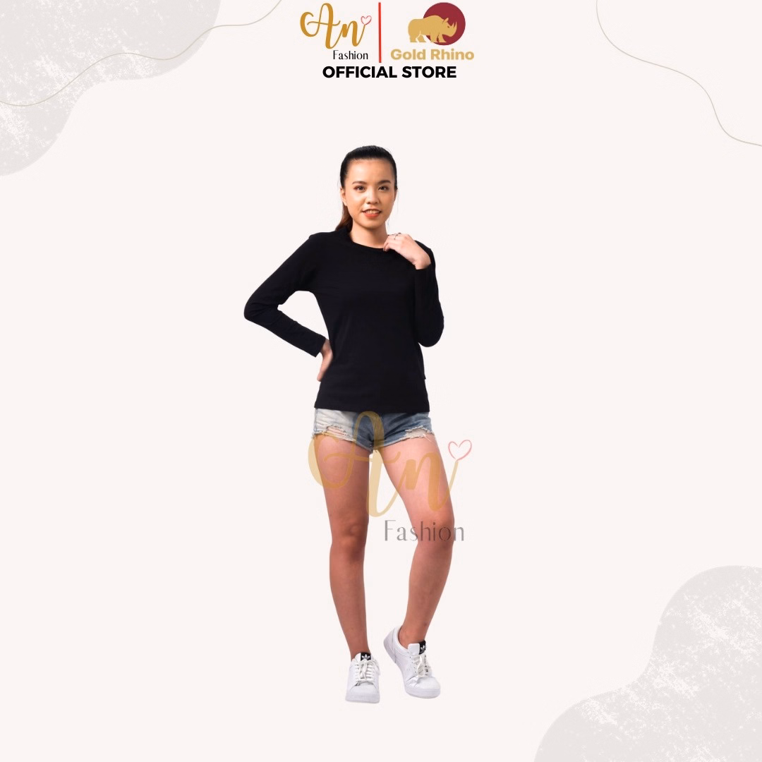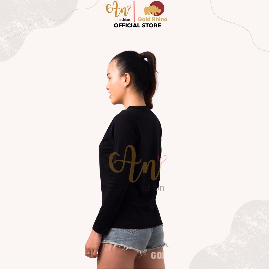 Áo Thun Nữ Tay Dài Cổ Tròn Màu Đen Đông Ấm Hè Mát Chất Liệu 100% Cotton Cao Cấp – Gold Rhino