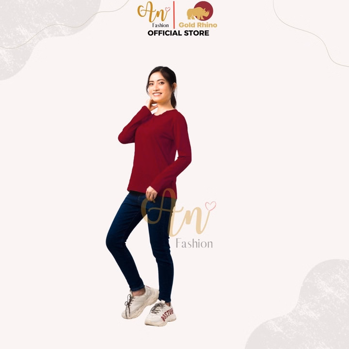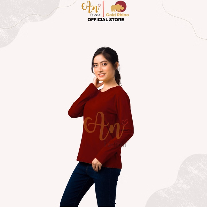 Áo Thun Nữ Tay Dài Cổ Tròn Màu Đô Jp Đông Ấm Hè Mát Chất Liệu 100% Cotton Cao Cấp – Gold Rhino