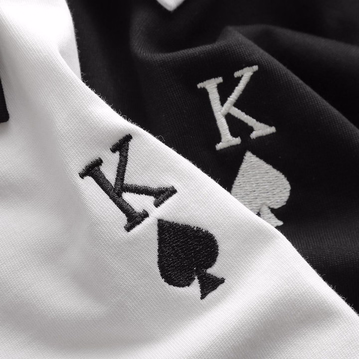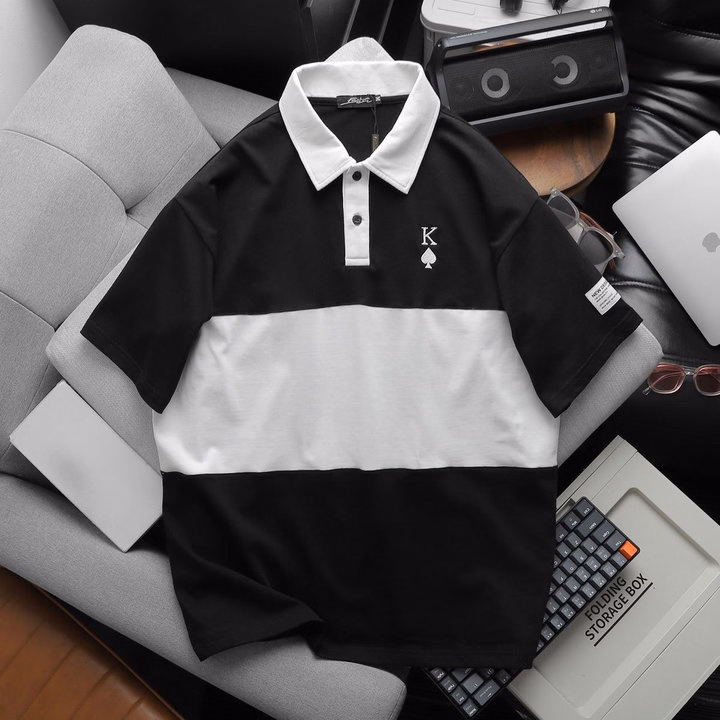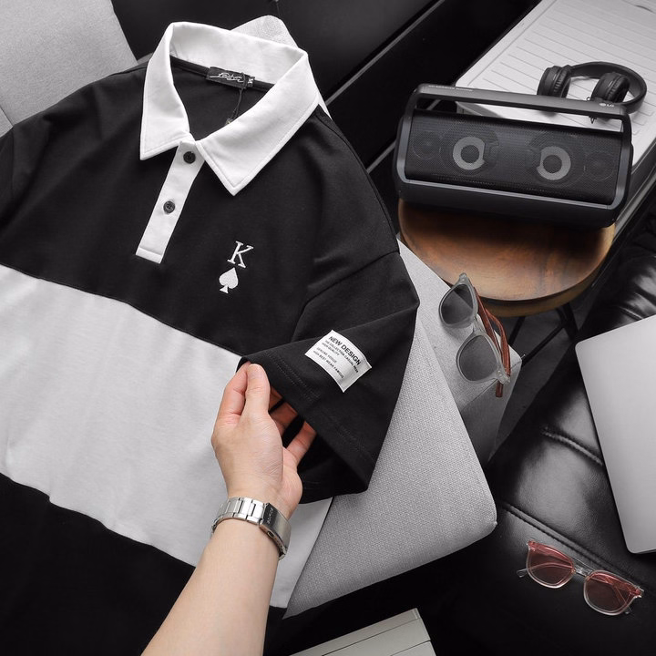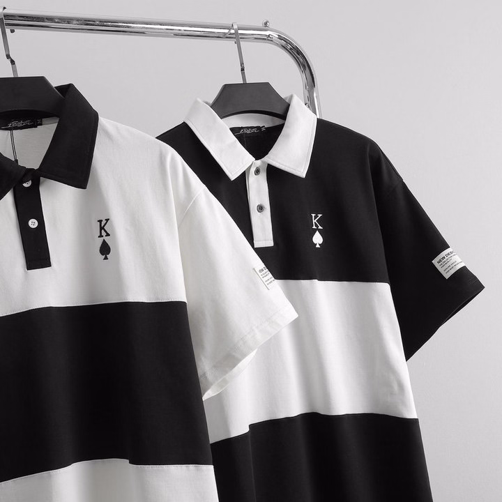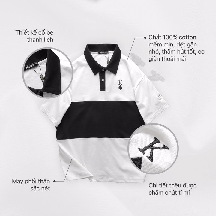 Áo có thiết kế cổ bẻ phối sọc ở bo cổ bo tay cùng chi tiết thêu sắc nét trước ngực tạo điểm nhấn và thêm phần mạnh mẽ