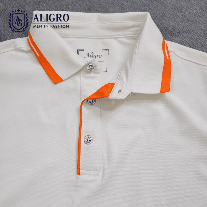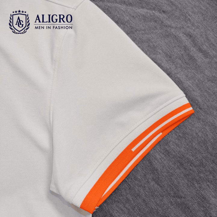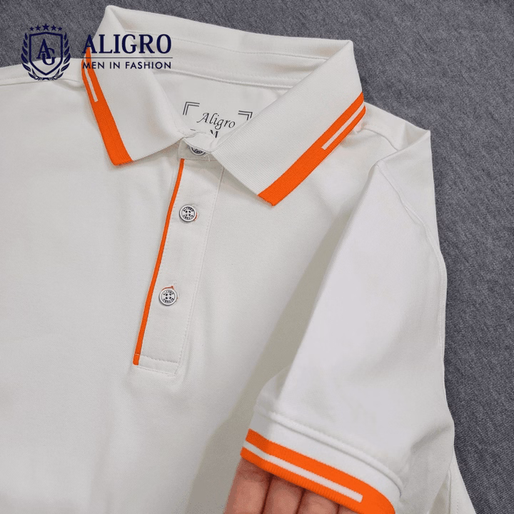 Áo Thun Polo Nam Ngắn Tay Aligro Chất Liệu Cá Sấu Mắt Chim Hoạ Tiết Dệt Lé Cam Sành Điệu Algplo135
