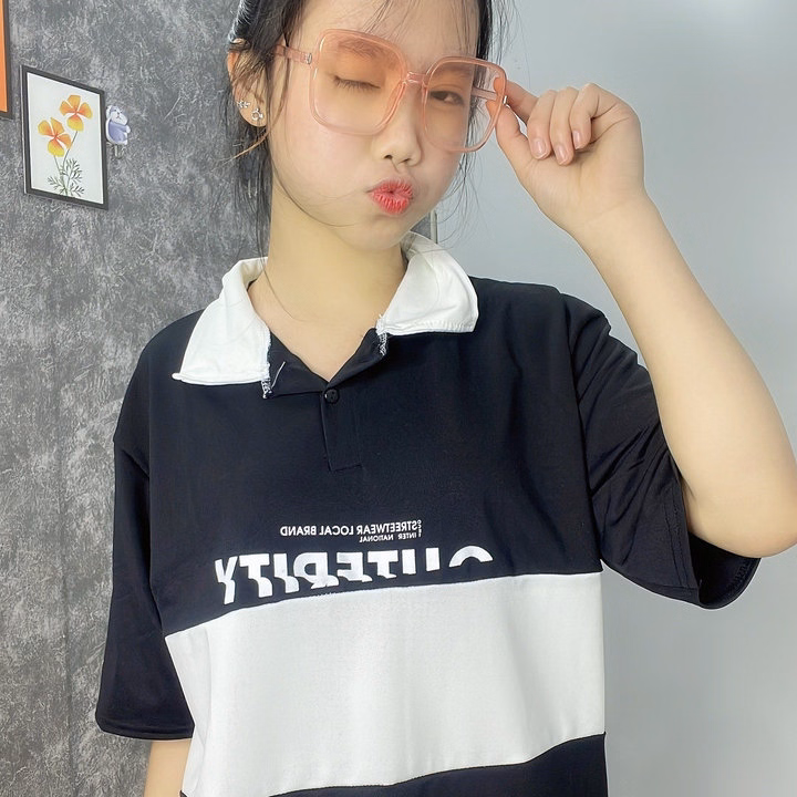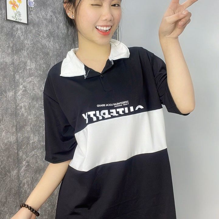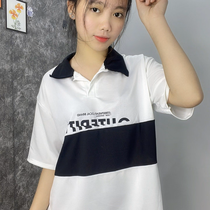Áo Thun Polo Nam Nữ Form Rộng Phối Màu Học Sinh Đen Trắng
