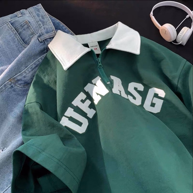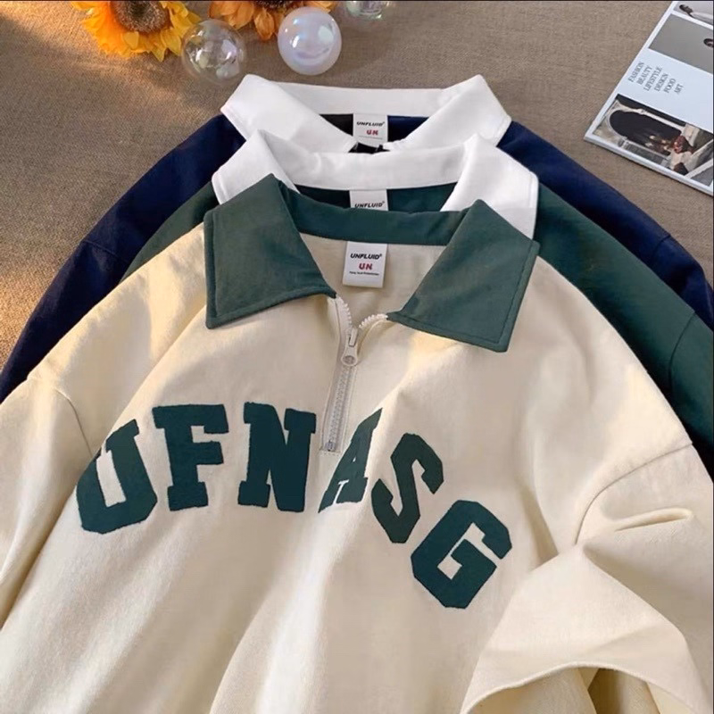 Áo Thun Polo Nữ, Áo Thun Có Cổ Nam Nữ Ovesize Chữ Ufn- Asg