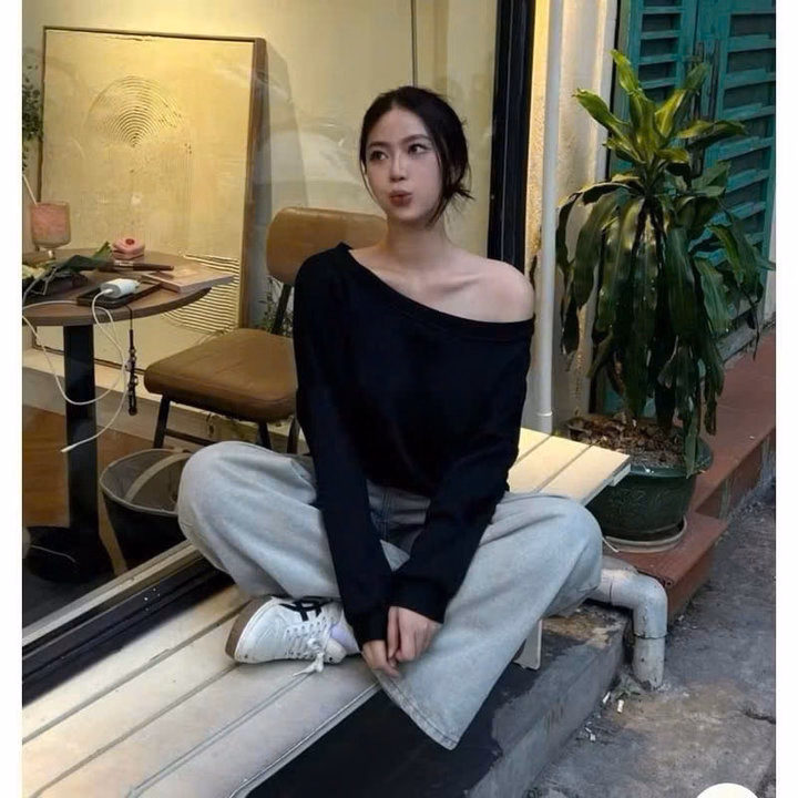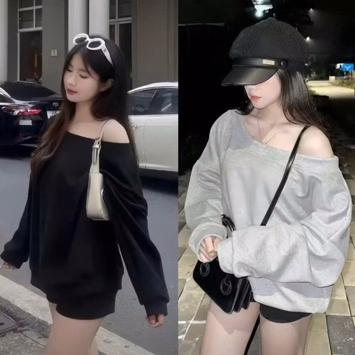 Áo Thun Sweater Tay Dài Lệch Vai Form Rộng Gu60Tr-Sam Store