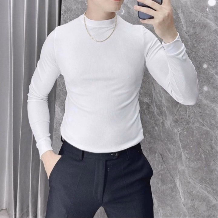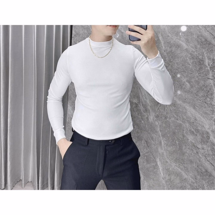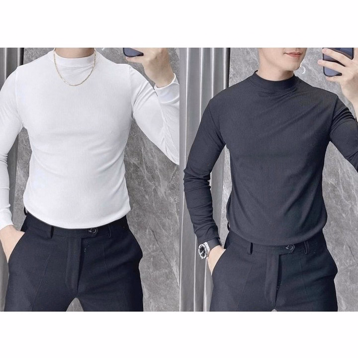 + Áo Thun Tăm Dài Tay Nam Tuto5 Menswear At07- Áo Phông Giữ Nhiệt Nam Cổ Cao Body Slim fit Tôn Dáng Cao Cấp-Tuto5 được may từ chất liệu vải Polyester lên form cực chuẩn