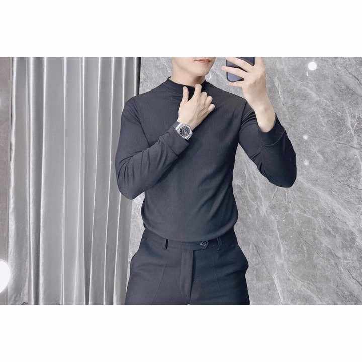 – Tên sản phẩm: Áo Thun Tăm Dài Tay Nam Tuto5 Menswear At07- Áo Phông Giữ Nhiệt Nam Cổ Cao Body Slim fit Tôn Dáng Cao Cấp-Tuto5