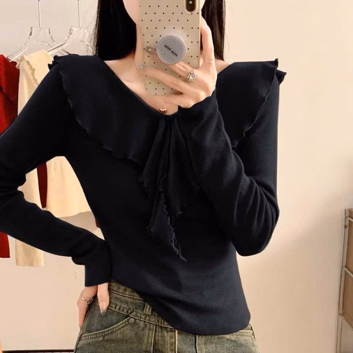 Áo Thun Tay Dài Cổ V Phối Bèo Cuốn Biên Ôm Body Ug47Kh- Sam Store