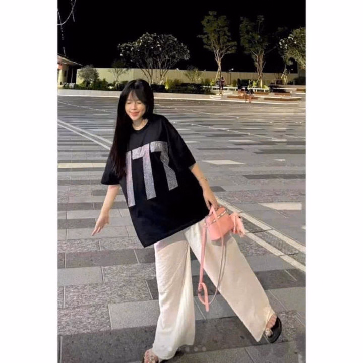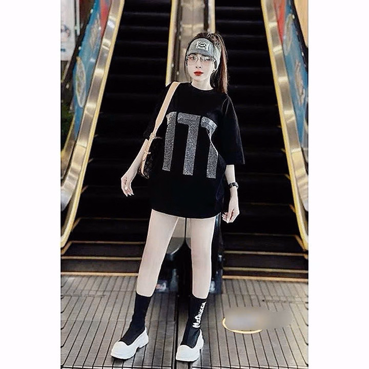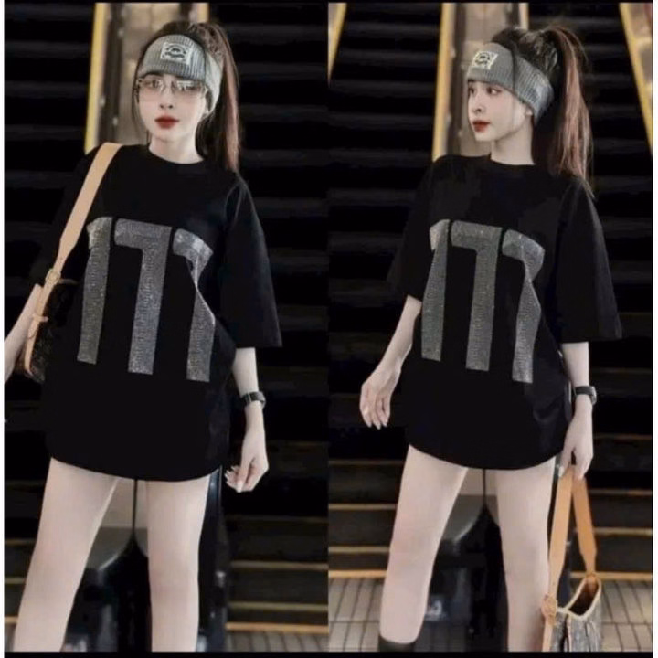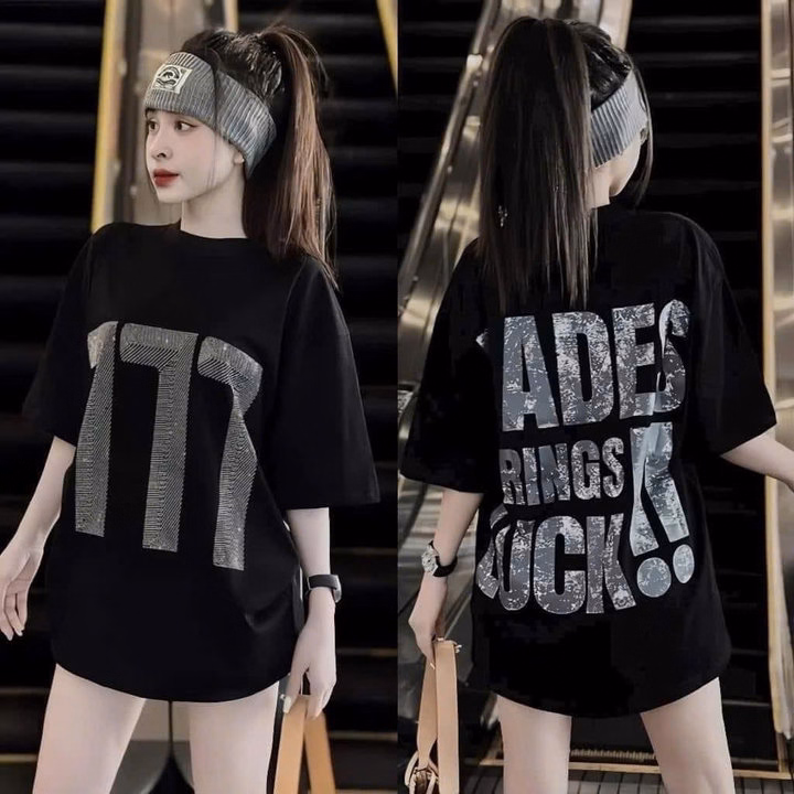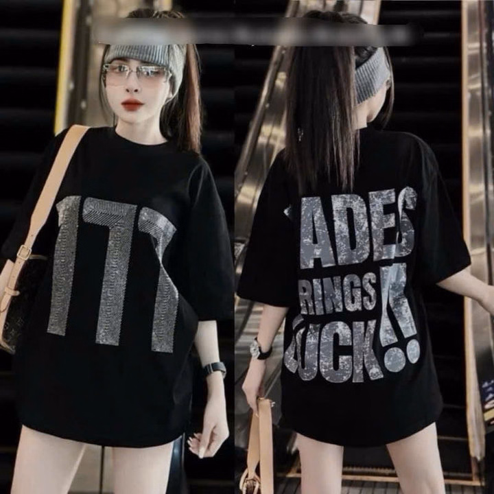 Áo Thun Tay Lỡ Cotton Khô Đính Đá 777 Mã Mới Form Rộng Tay Lỡ Unisex Oversize