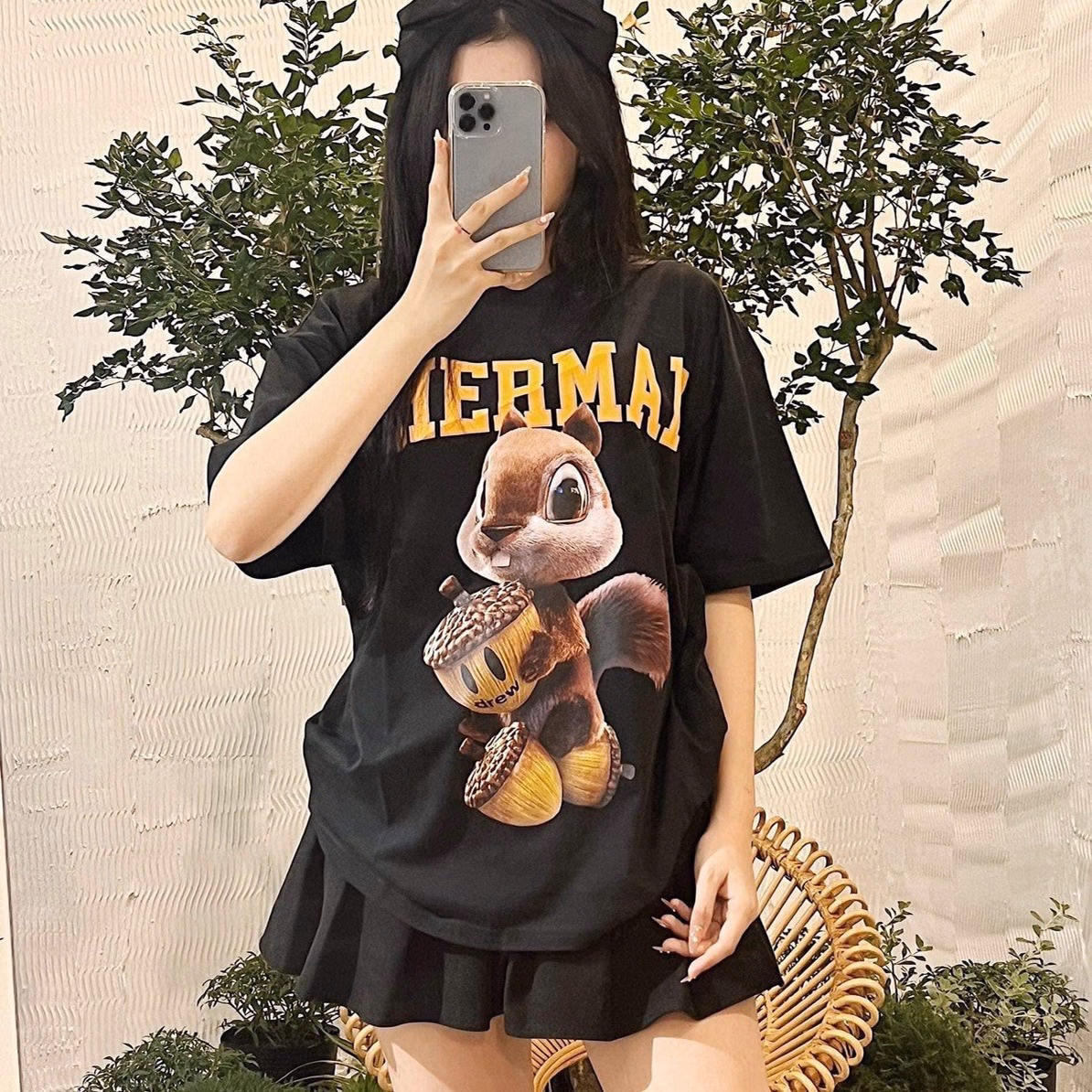 Áo Thun Tay Lỡ Unisex Nam Nữ Drew Mẫu Mới In Hình Sóc, Chất Liệu 100% Cotton Cao Cấp Mịn Mát Thấm Hút Mồ Hôi (Attl34) – Chốt Đi Store
