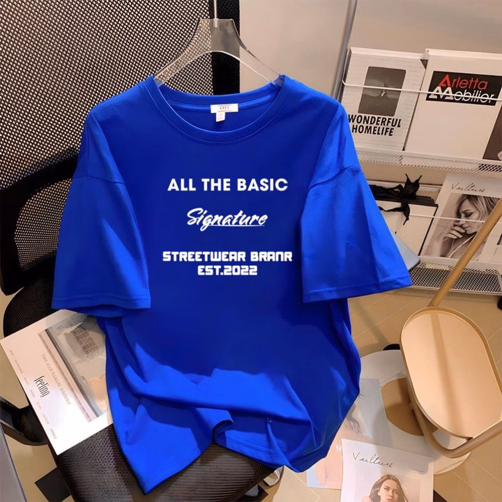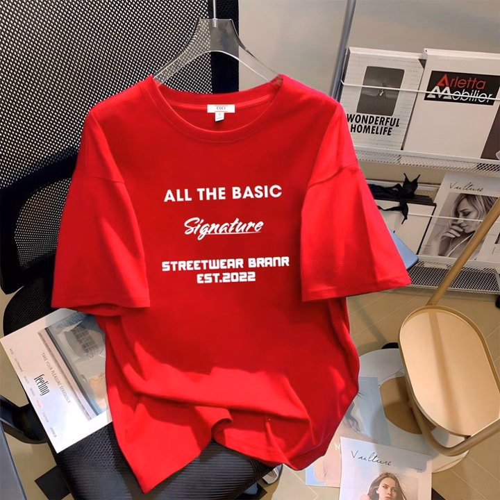 – Áo thun nữ , áo phông rộng nữ in hình chữ và gấu trên áo.