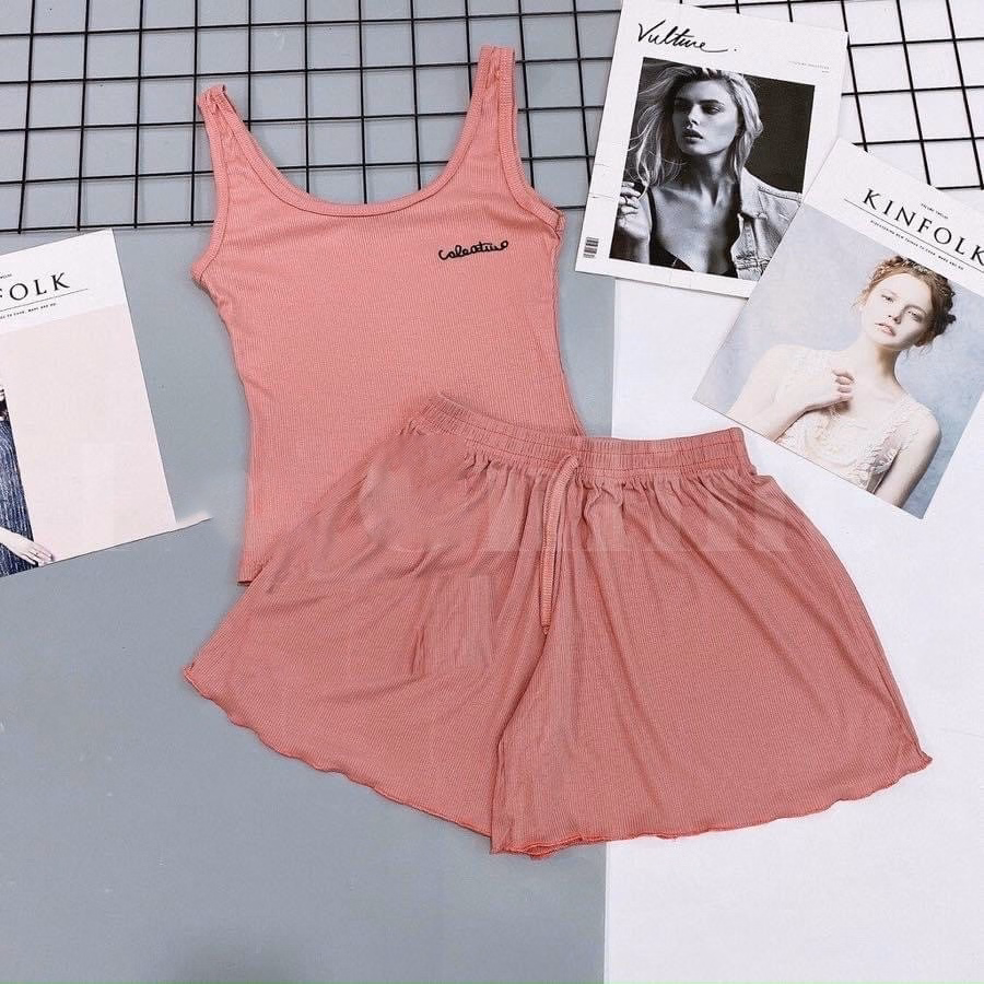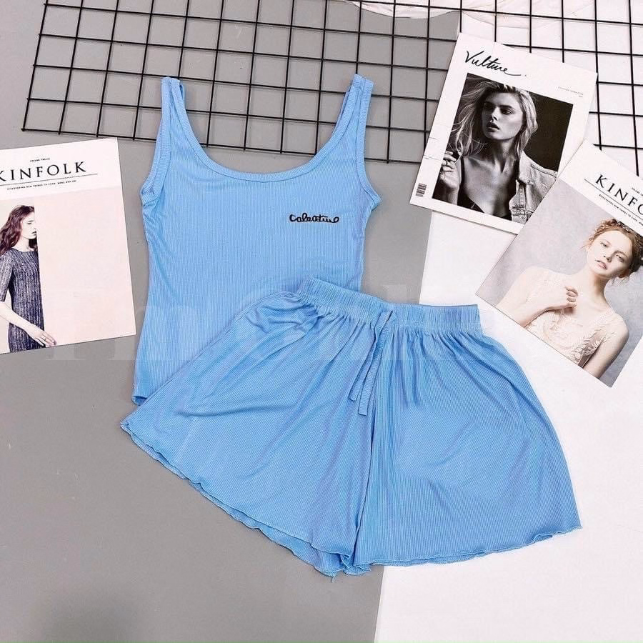 Bộ Mặc Nhà Sát Nách Thêu Chữ Chất Cotton Cực Mát Cho Mùa Hè Sldcb27 – Diepchi Fashion