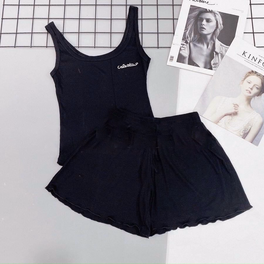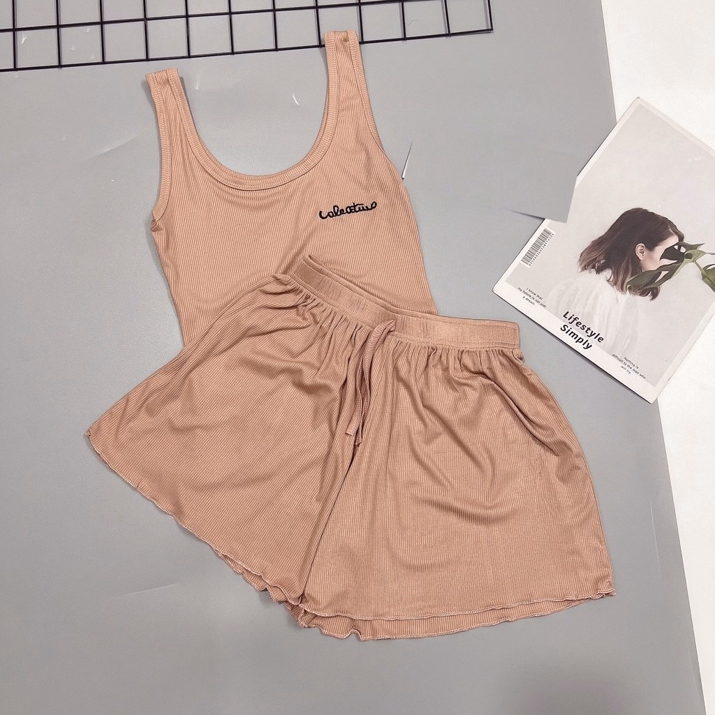 Bộ Mặc Nhà Sát Nách Thêu Chữ Chất Cotton