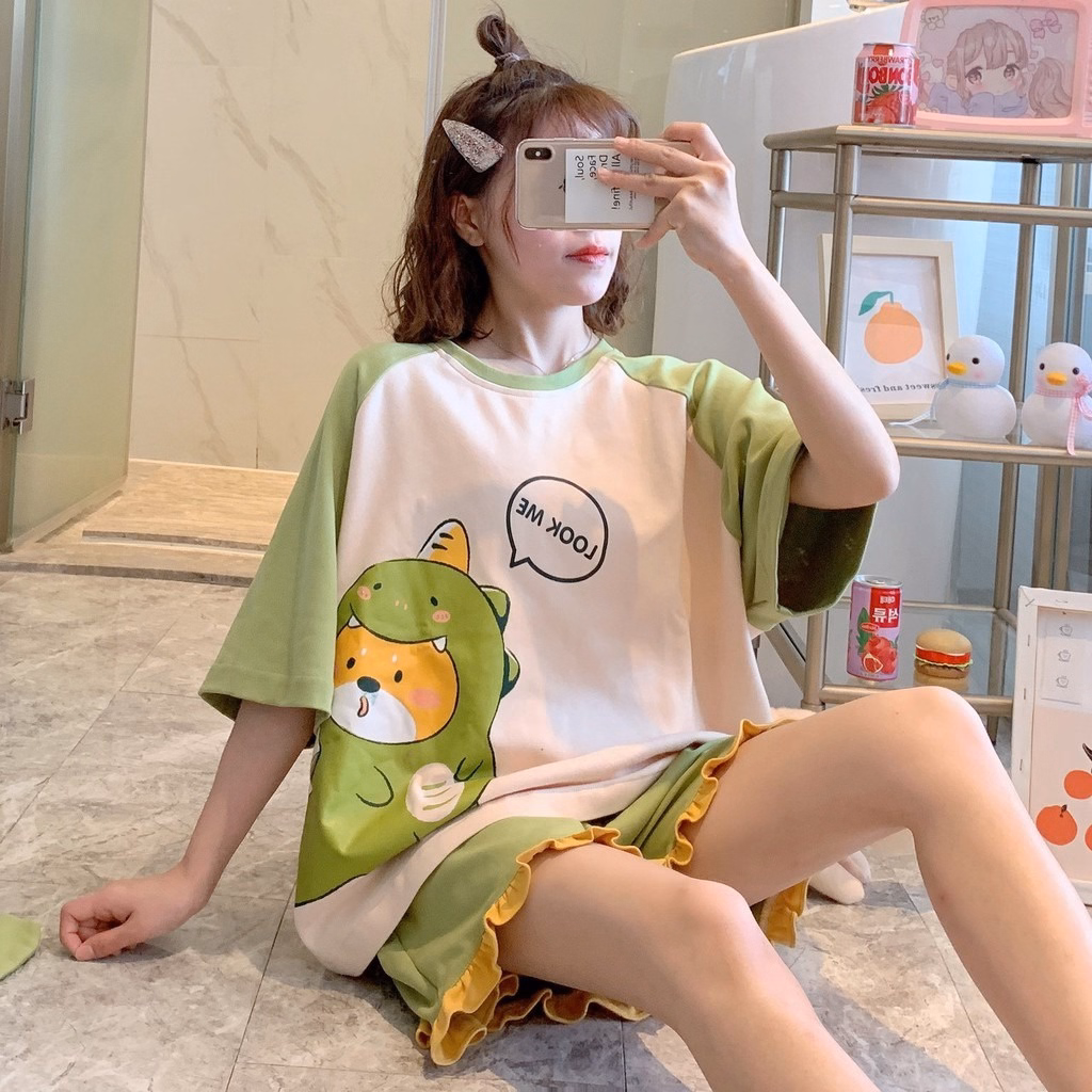 - Tên Sản phẩm: Bộ ngủ đùi nữ cô gái khủng long