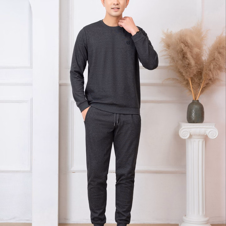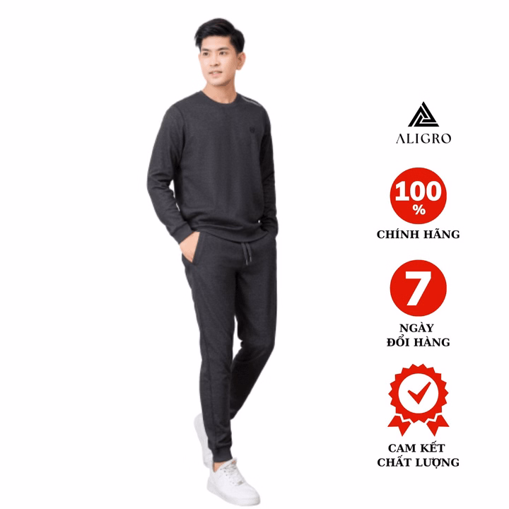 Bộ Nỉ Aligro Cổ Tròn Màu Ghi Đậm Bn.13 – Aligro