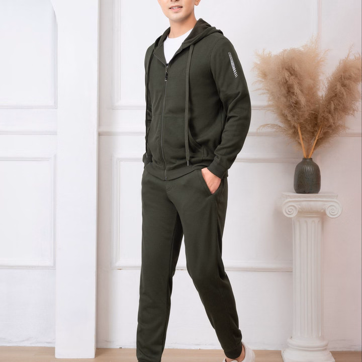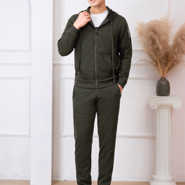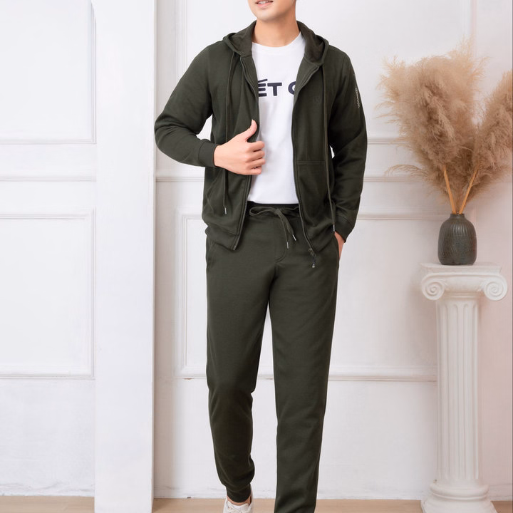 Bộ Nỉ Hoddie Aligro Kéo Khóa Có Mũ Màu Xanh Rêu Bn.16 – Aligro