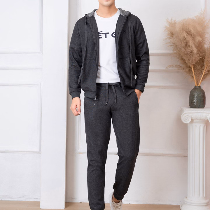 Bộ Nỉ Hoddie Nam Aligro Kéo Khóa Có Mũ Màu Ghi Đậm Bn.17 – Aligro