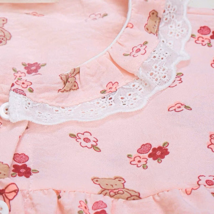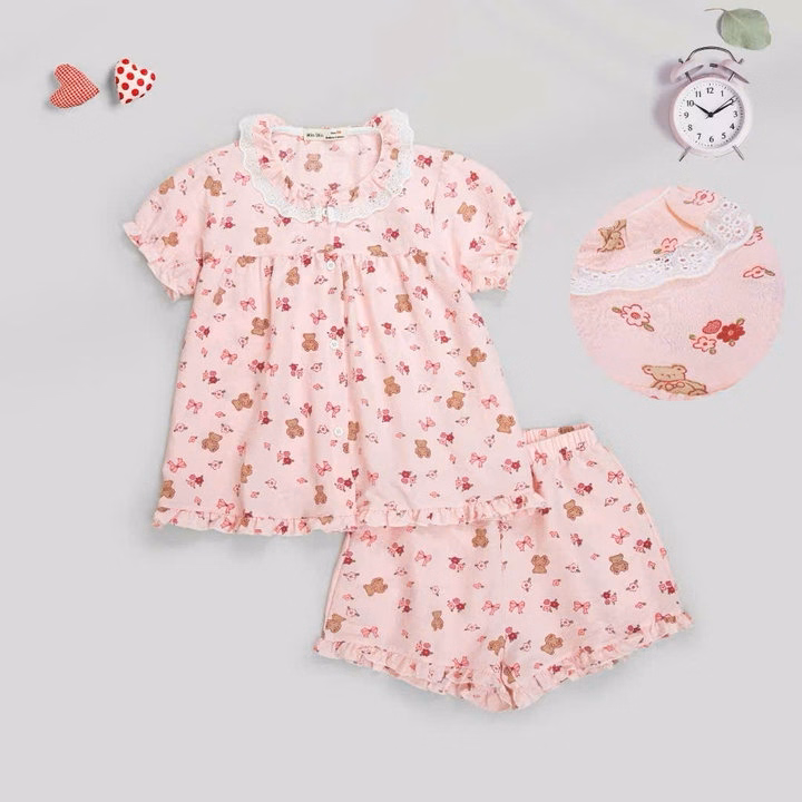 Bộ Pyjama Bé Gái Chật Đũi Cotton Mềm Mại Với Hoạ Tiết Gấu, Kitty Dễ Thương Từ 12-50kg Cho Bé Gái