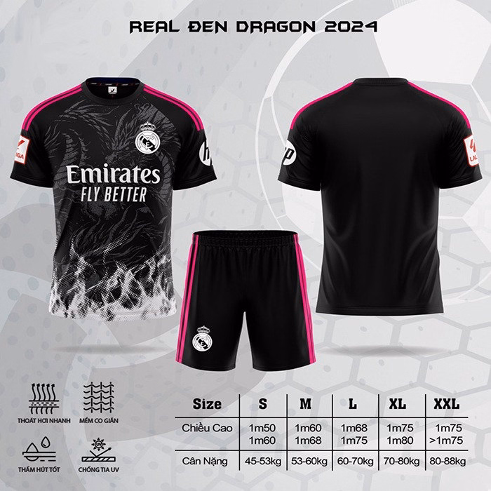 ✅ Thời trang bóng đá: Ngoài khả năng chơi bóng đá, sản phẩm cũng là một phần của thời trang bóng đá độc đáo, thể hiện tình yêu và niềm tự hào dành cho Câu Lạc Bộ Real Madrid.