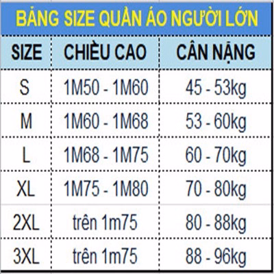 Size Xl: ( chiều cao 1M75 – 1M80 ), cân nặng: 70 – 80kg