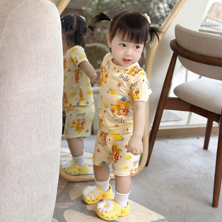 Bộ Quần Áo Thun Lạnh Họa Tiết Tay Ngắn Mdkids Cho Bé Trai Và Bé Gái 5-15Kg.
