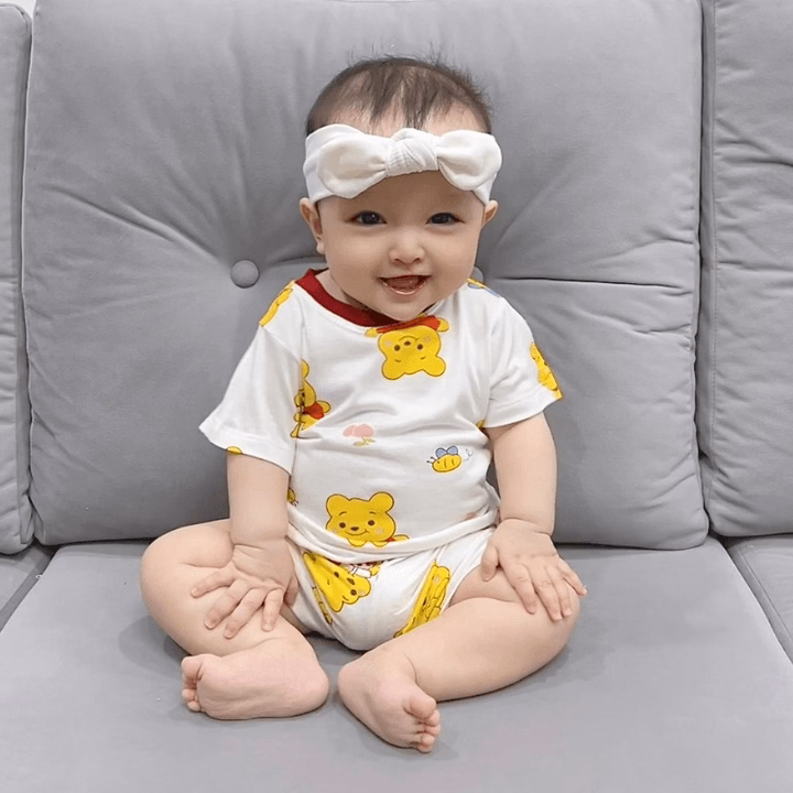 Đối với những bé trộm vía bụ bẫm hoặc mẹ muốn bé mặc rộng hẳn thì +1 size.