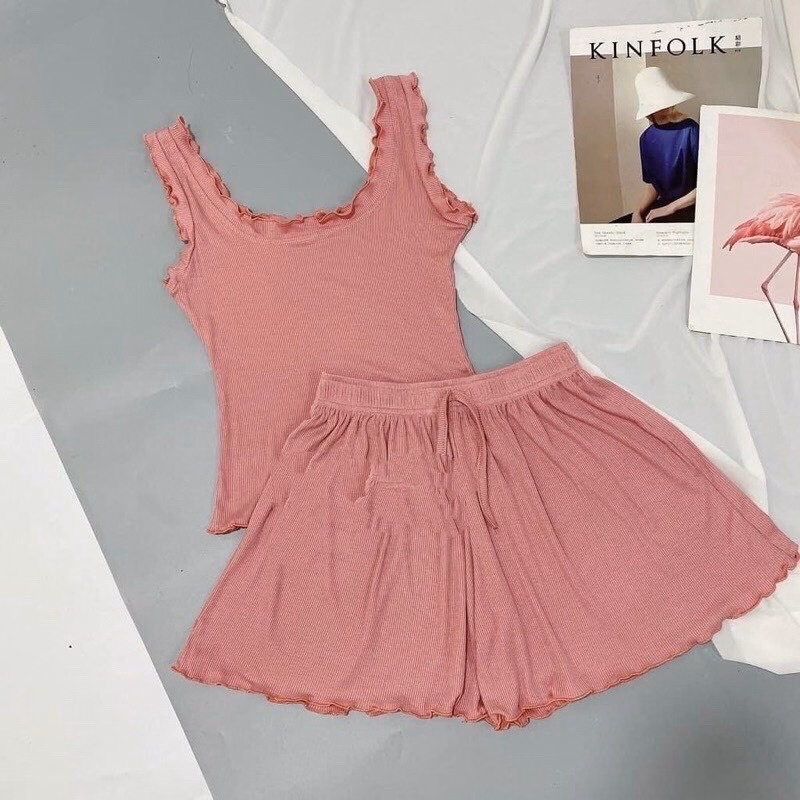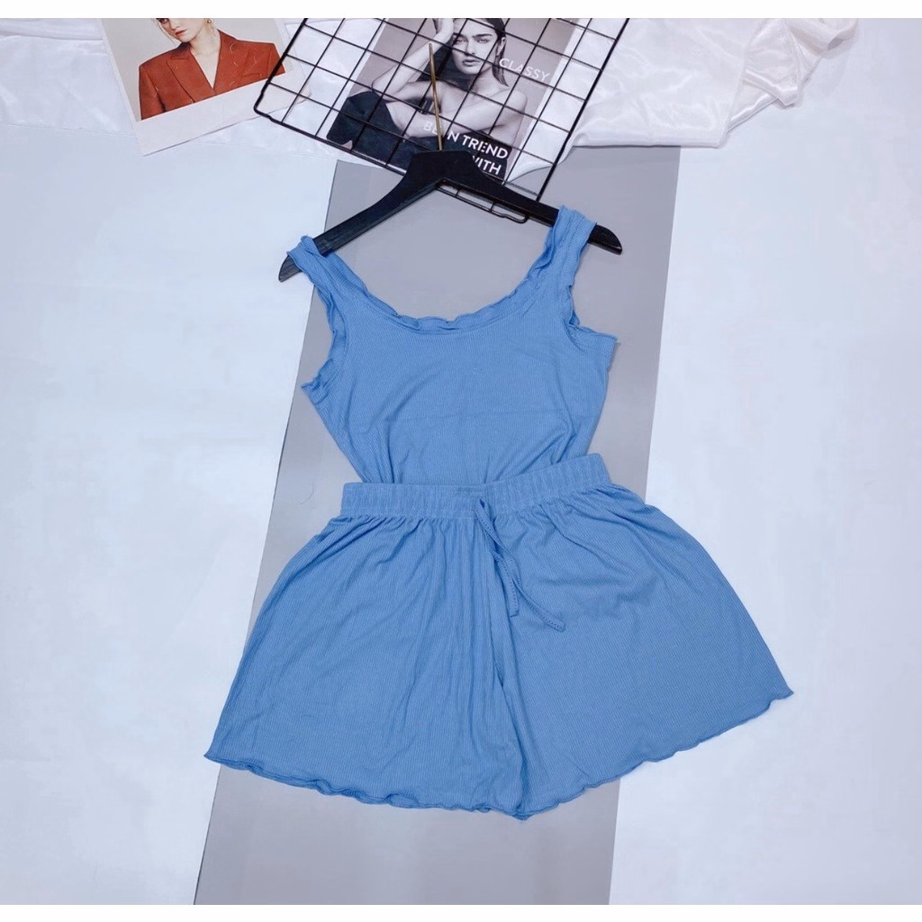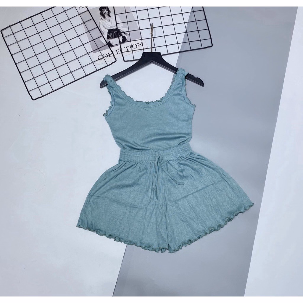 Bộ Sản Phẩm Áo Ba Lỗ Viền Bèo Kèm Quần Short Cạp Chun Chất Cotton Lạnh Sqavb – Diepchi Fashion