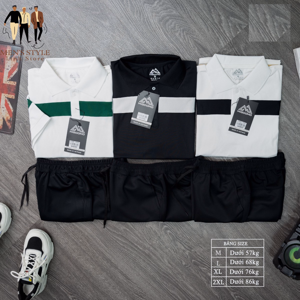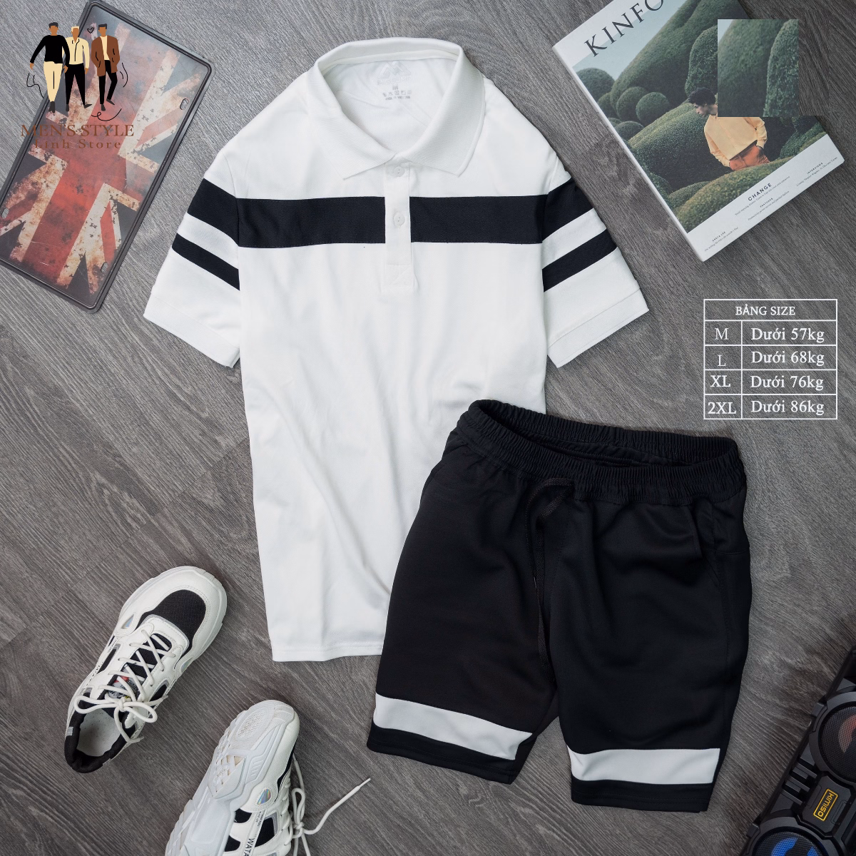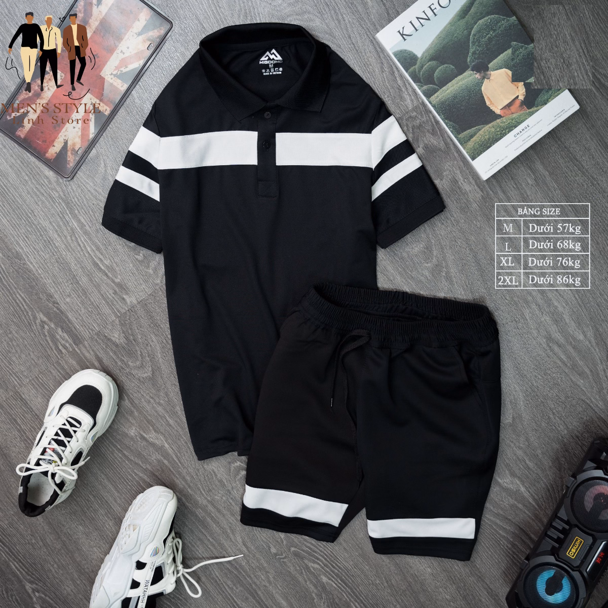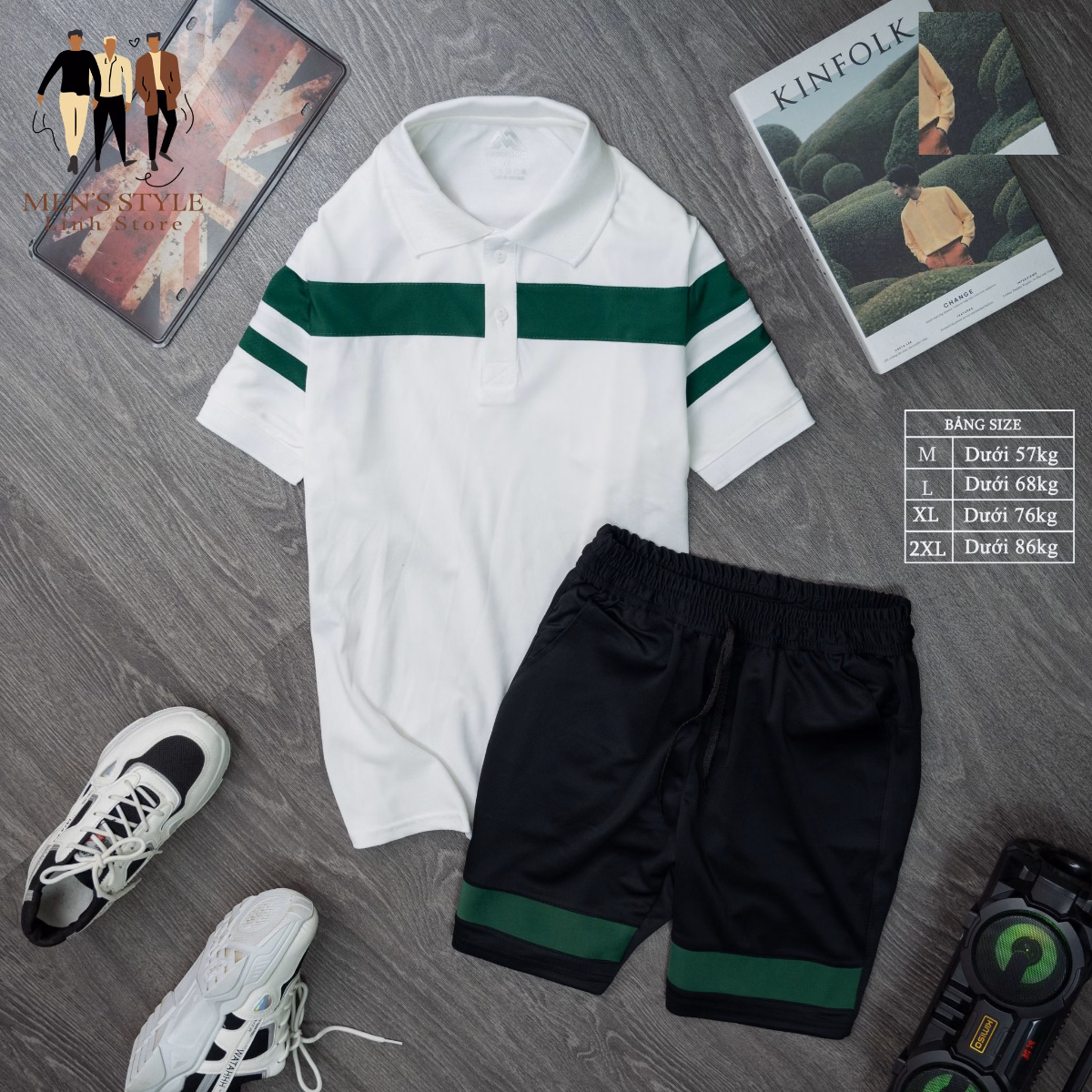 • Tên sản phẩm: Bộ thể thao cộc tay Polo Nam Phối màu Sọc ngang – Men’Style