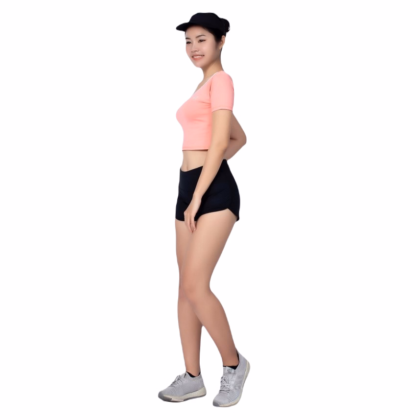 Với thiết kế áo croptop viền cổ áo trẻ trung kết hợp với quần short ngắn chữ V tạo sự khỏe khoắn, năng động đầy cá tính.