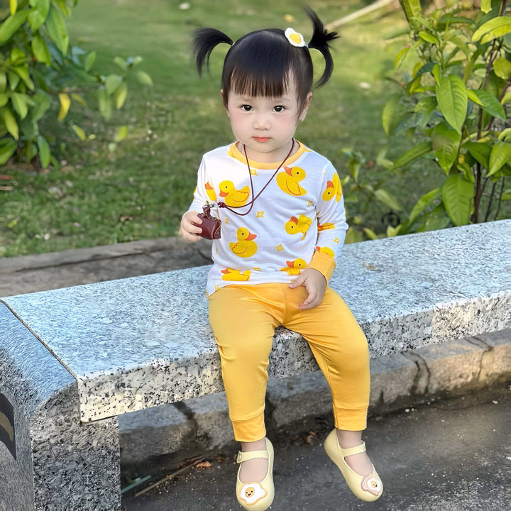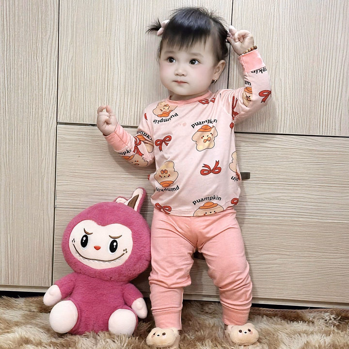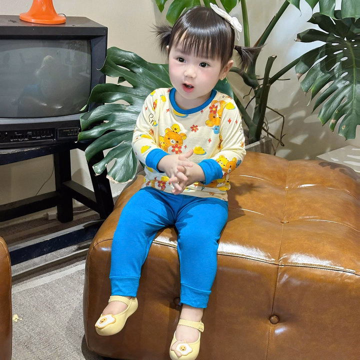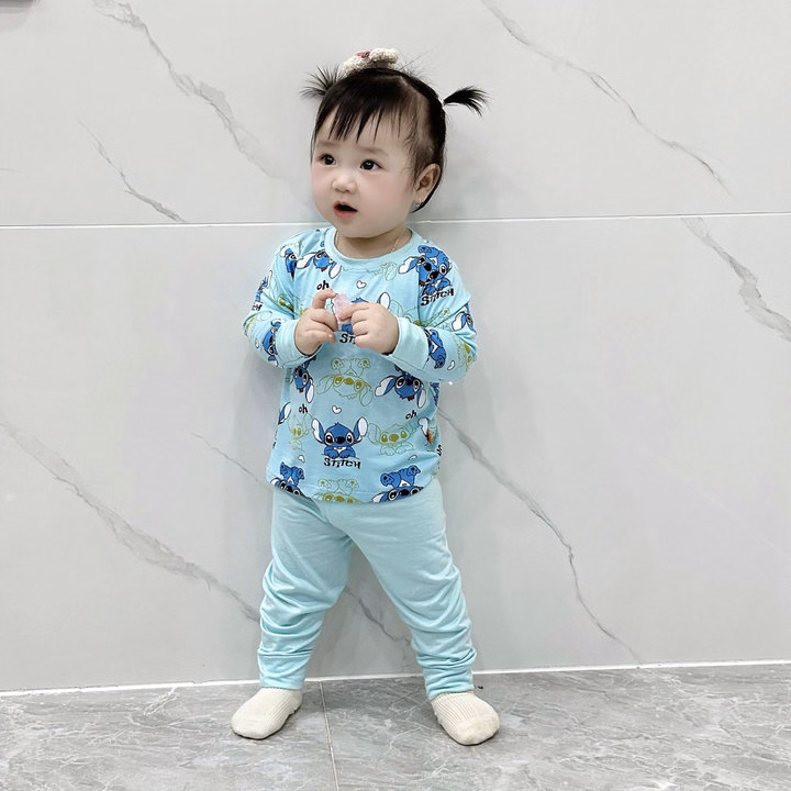 Bộ Thun Lạnh Họa Tiết Tay Dài,Quần Dài,Cho Bé Trai,Bé Gái,Trẻ Em,Size 5-15Kg