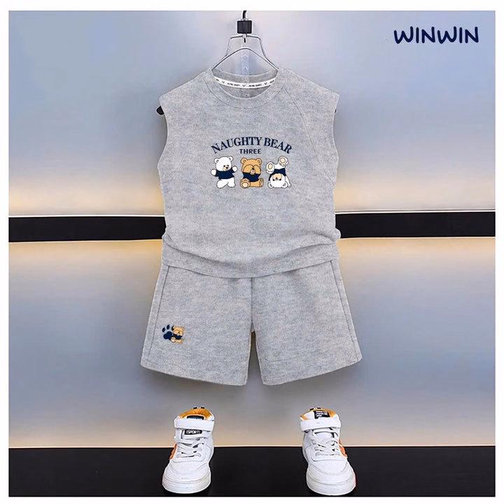 Bộ Thun Sát Nách Bé Trai In Gấu Từ 8-24Kg Dành Cho Bé Trai