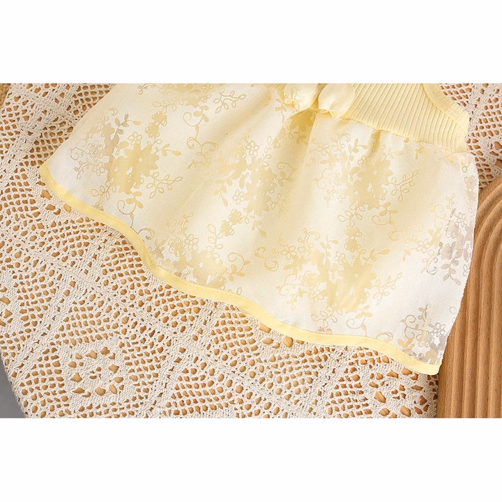 – Chất liệu: Áo Cotton gân mềm, thấm hút mồ hôi. Váy chất Voan lưới họa tiết hoa nổi, nhẹ và thoáng khí