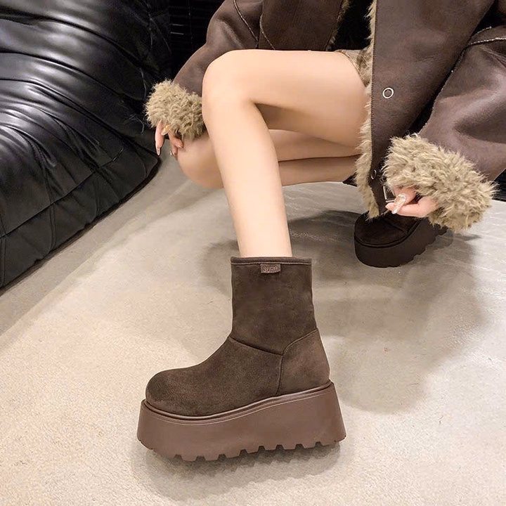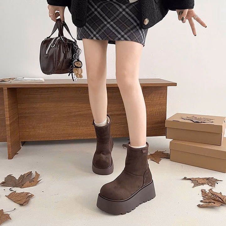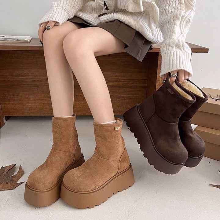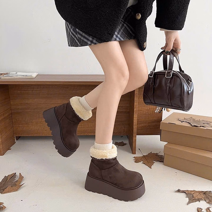 Bốt Nữ Mirasu – Cổ Chui Tiện Lợi, Da Lộn Lót Lông Siêu Dày, Phong Cách Thời Thượng – Pipi Store