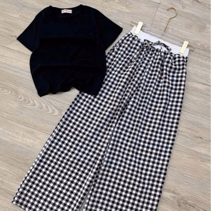 | Màu sắc | quần caro mini đen + áo croptop trơn đen, quần caro mini đen + áo croptop trơn trắng, quần caro vàng+ áo croptop trơn đen, quần chun đen hách dáng + áo croptop đen tăm trơn, quần loe 4 sọc size m40-45kg + mix áo crt bông hoa đen, quần loe 4 sọc size m40-45kg + mix áo crt bông hoa trắng |