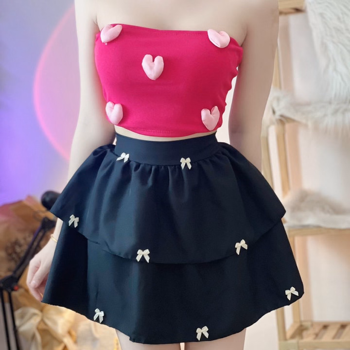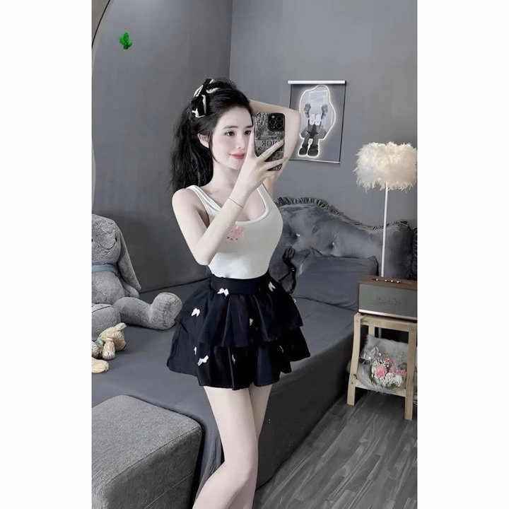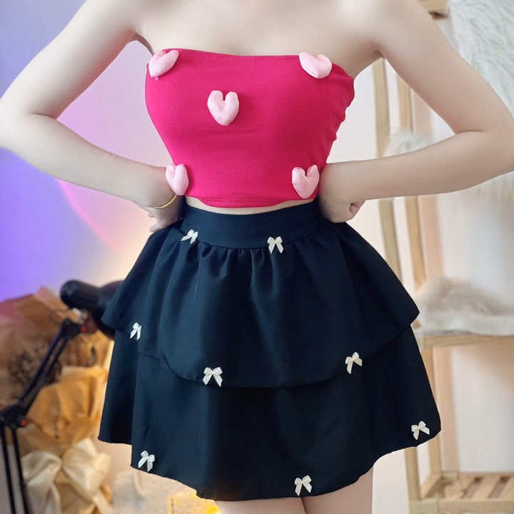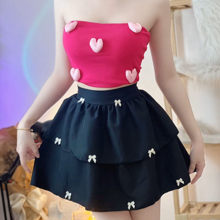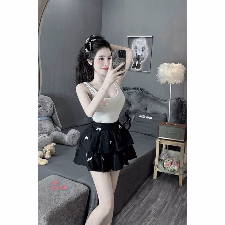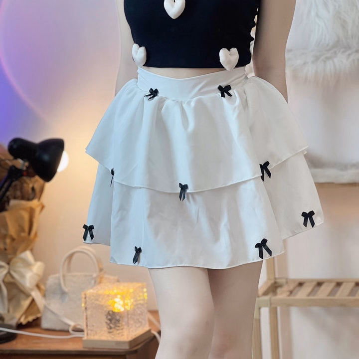Chân Váy 2 Tầng Xòe Đính Nơ – Lê Phương Boutique