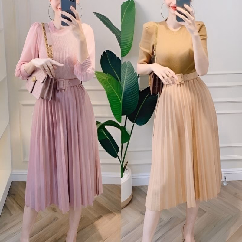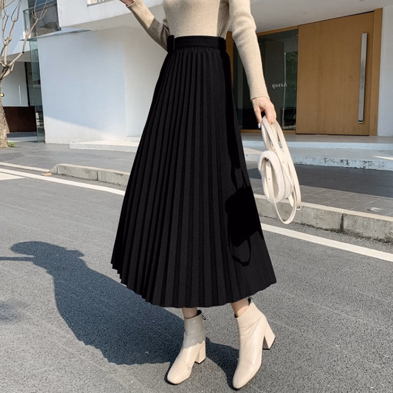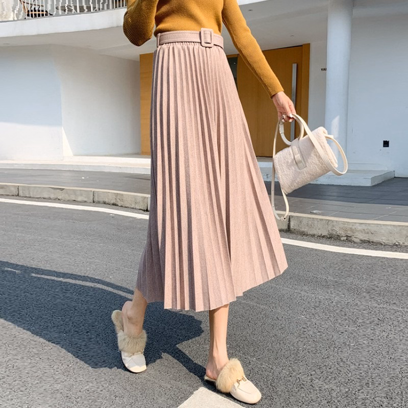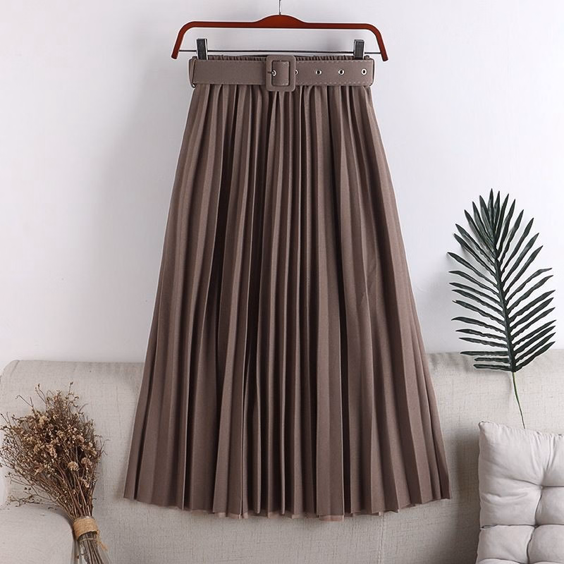 Chân Váy Dập Ly Kèm Đai Chất Liệu Umi Phong Cách Vintage
