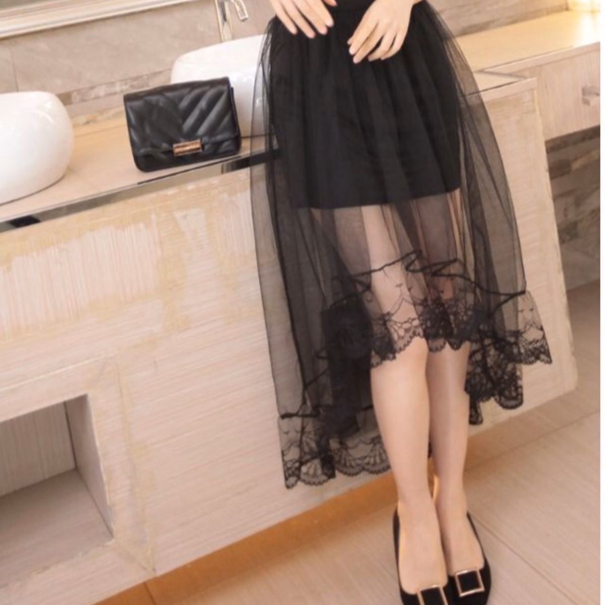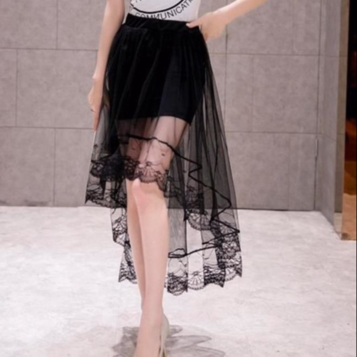 -Váy thiết kế kiểu dáng thời trang, với một lớp lót bên trong, lớp ren bên ngoài.